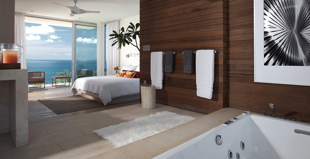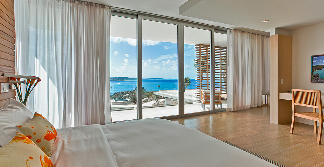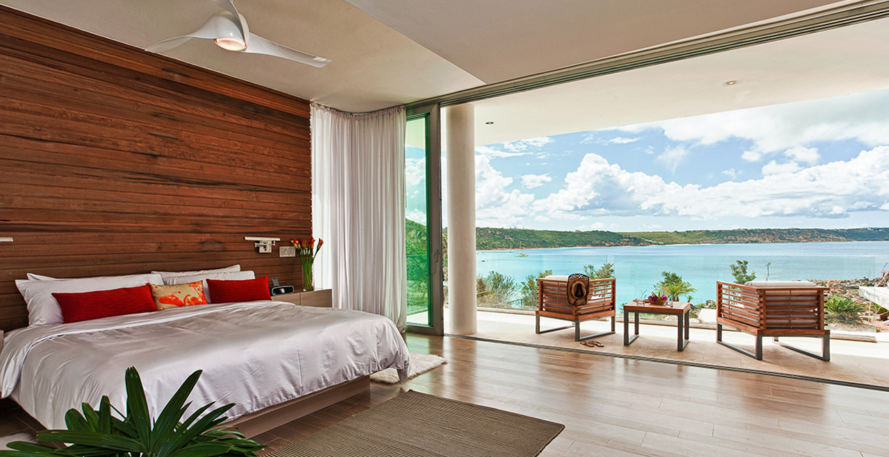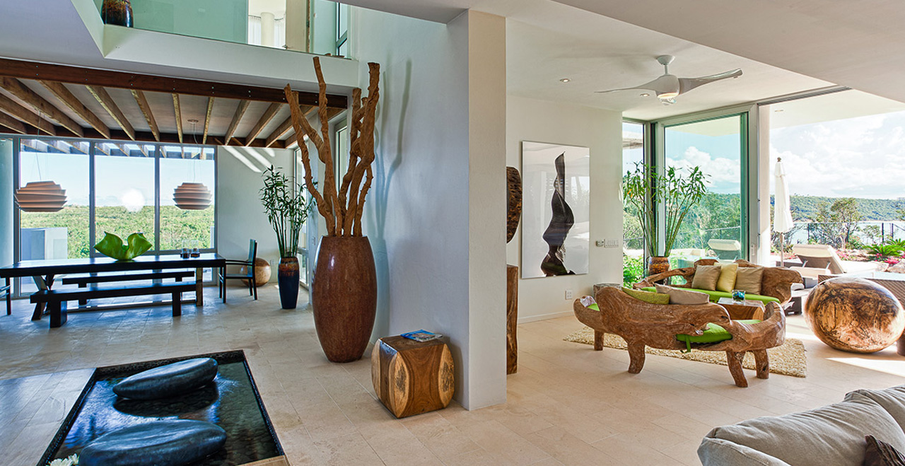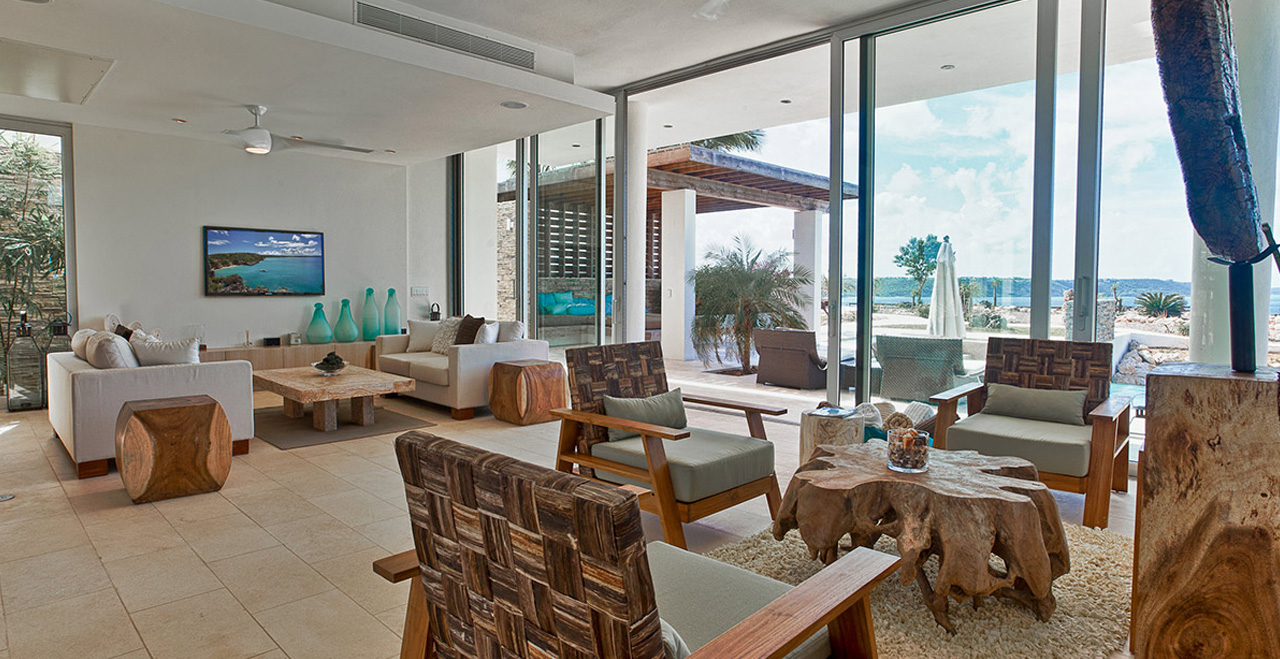The sleek furnishings and contemporary finishes provide clear views of the Caribbean Sea from almost every angle at Ani Estate. Wake up to breathtaking sea and sky hues from your bedroom each new morning. The interiors are clean, bright and modern, with naturally hewn wooden furniture serving as accent pieces throughout. Breeze through indoors and out for a casually elegant island experience!