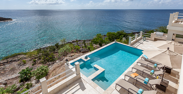 Facing sunsets on the Atlantic Ocean and a 150ft walk to Black Garden Beach, Sunset Beach House, provides it all. Four ocean-front, ensuite king-sized bedrooms each have private balconies. An open floor plan makes entertaining easy with the gourmet kitchen leading into the living room and into the outdoor eating area. An outdoor TV room with Satellite TV leads to the heated-pool/Jacuzzi and outdoor shower. Steps lead down to the water and to the beach. This central location, just around the bend from Little Bay, provides easy access to restaurants and beaches on both ends of the island. All while maintaining the privacy that big hotels simply cannot provide.