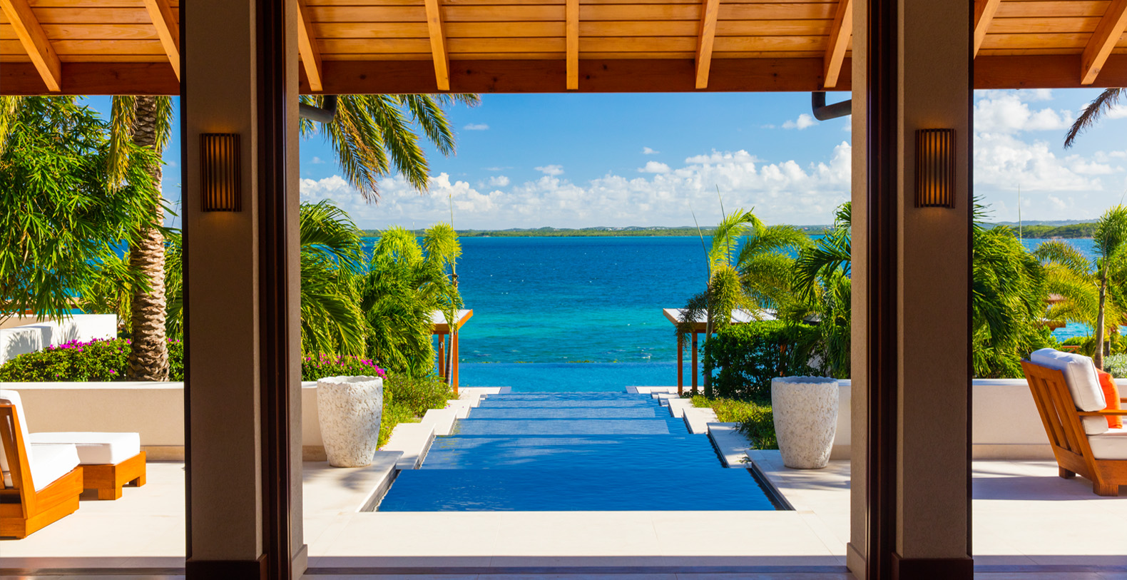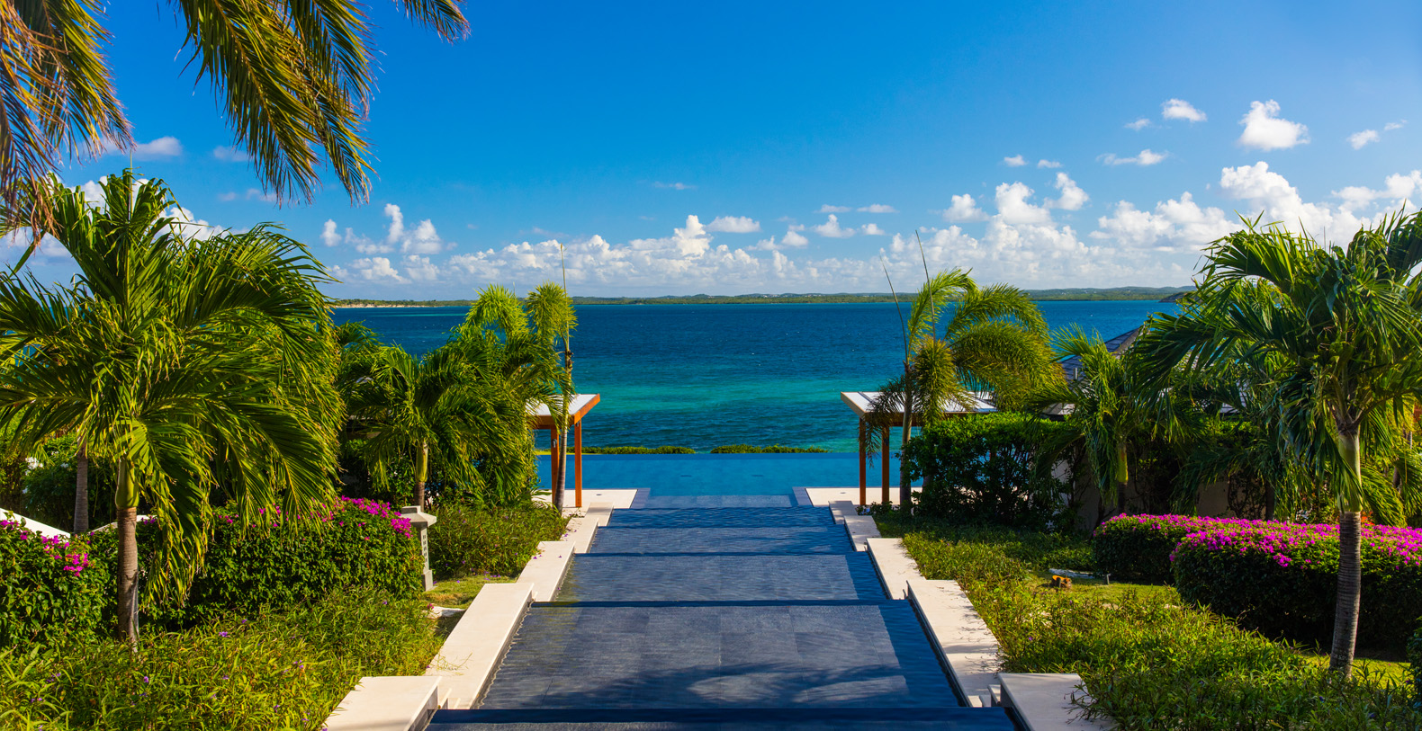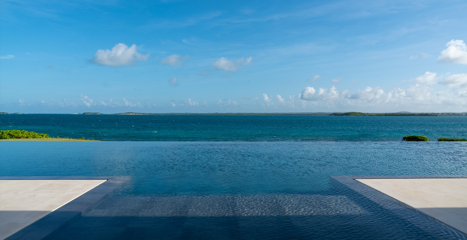 Expansive Infinity Edge Ocean-Front Pool with Pool House and Kitchenet