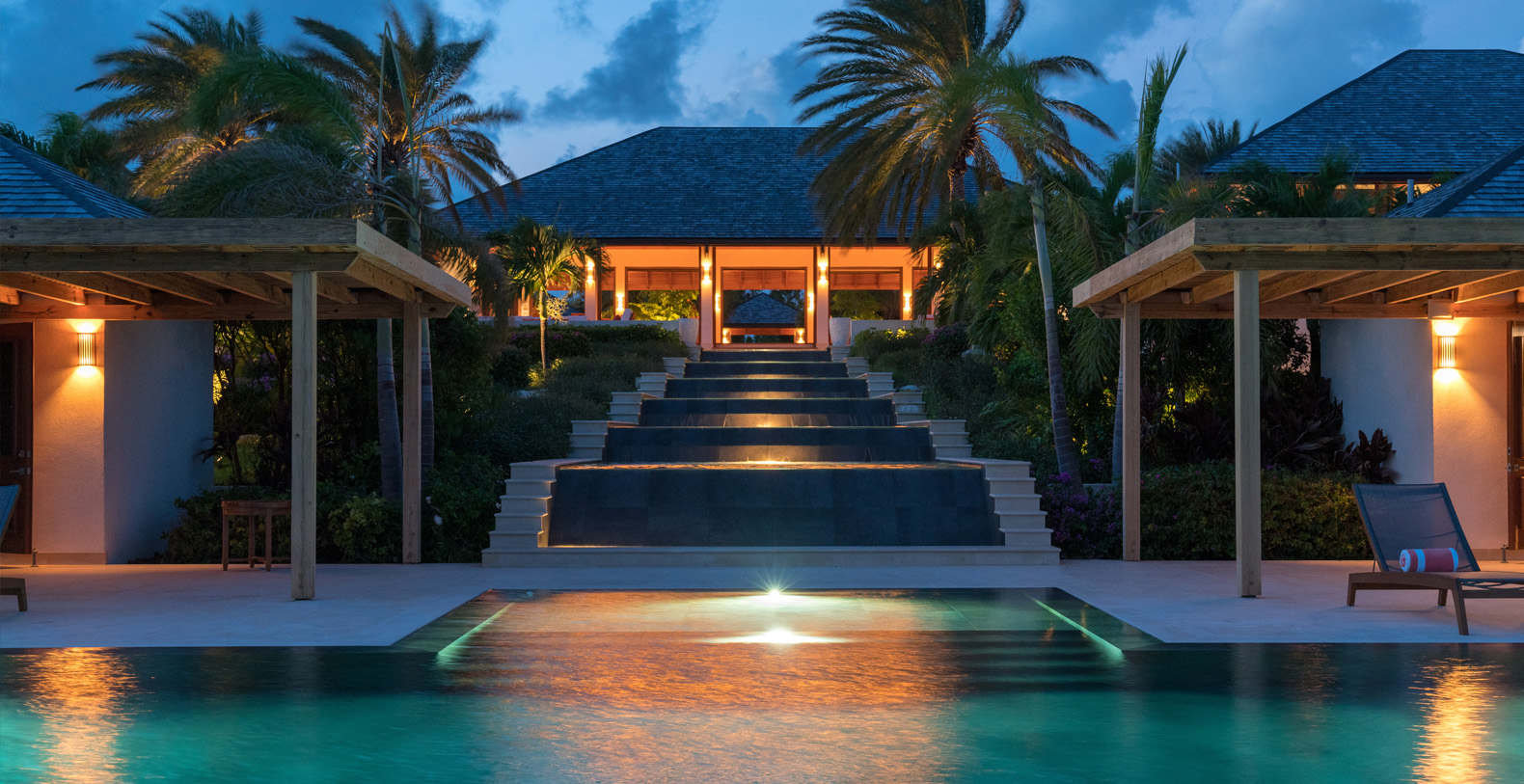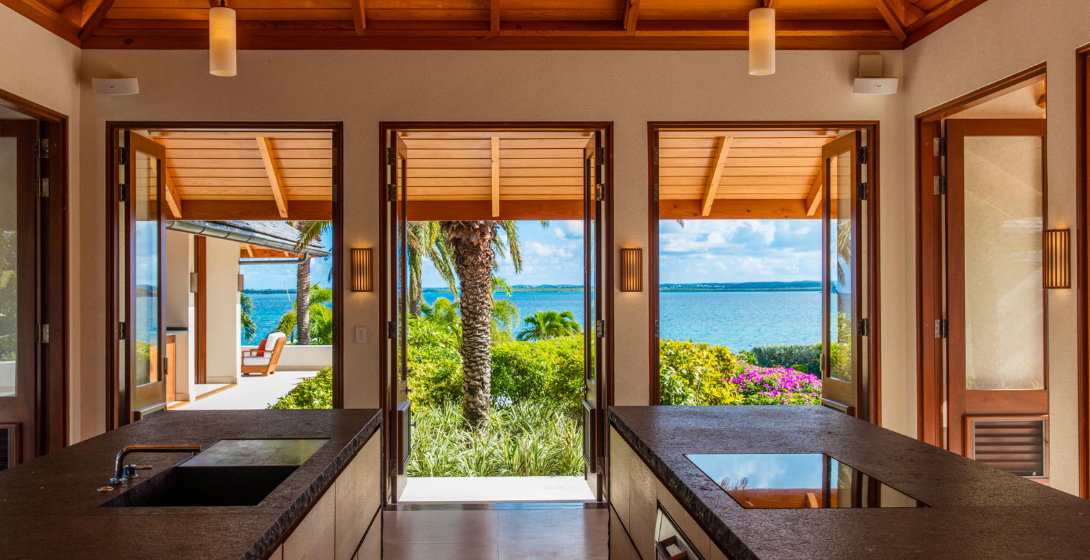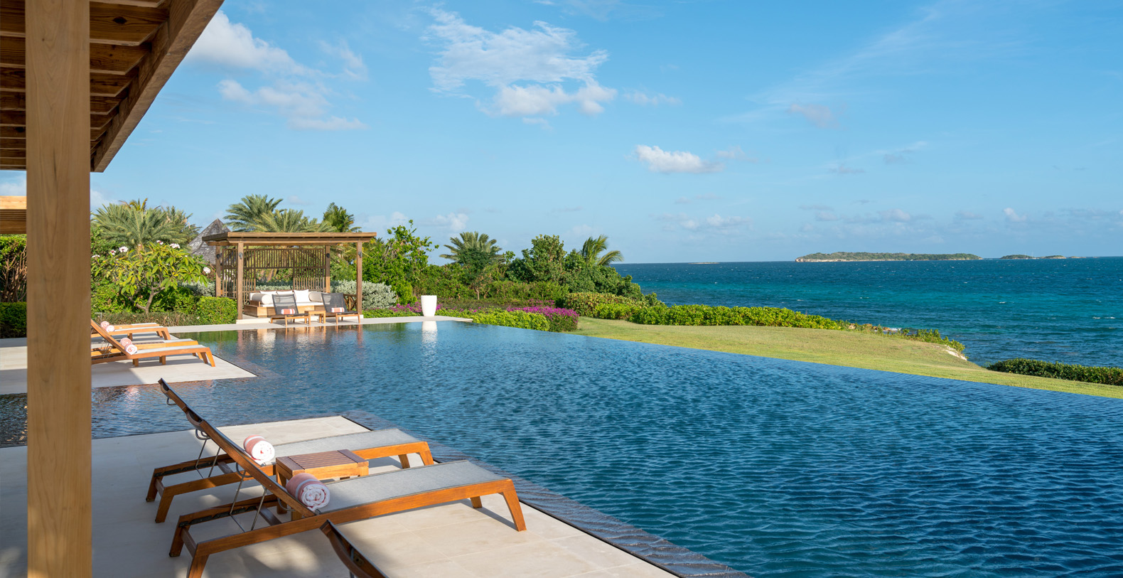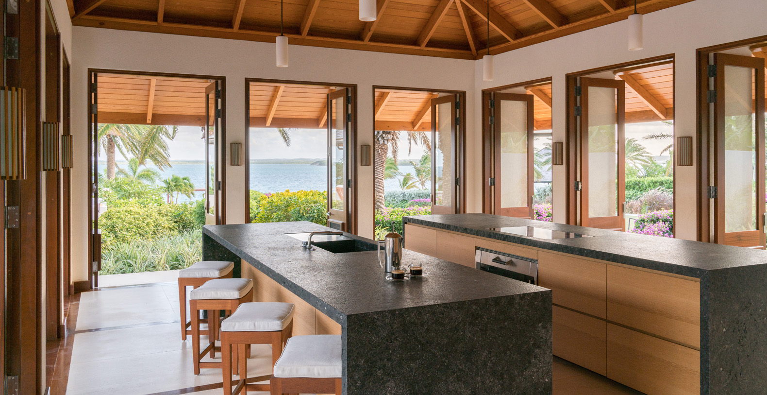 The expansive infinity pool rests at the foot of the waterfalls, and offers peace-instilling vistas of the south-eastern shore of Jumby Bay Island. Surrounding the pool is a large terrace with space for entertaining in four separate gazebos, a kitchenette perfect for a poolside barbecue, and a dedicated dining space.