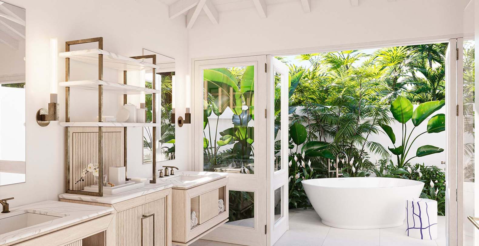 The Estate Suite at Jumby Bay is the most expansive of our one-bedroom accommodations - offering a sophisticated blend of privacy and luxury. Exuding residential elegance, the entry vestibule leads to a spacious living room furnished with all the amenities of home. The private master bedroom contains a spacious bathroom, and an outdoor garden arranged for seclusion , complete with soaking tub and a blissful rain shower. A private butler pantry for in-suite dining and an office complete this accommodation. The Estate Suite also offers the option of one or two additional connecting suites.