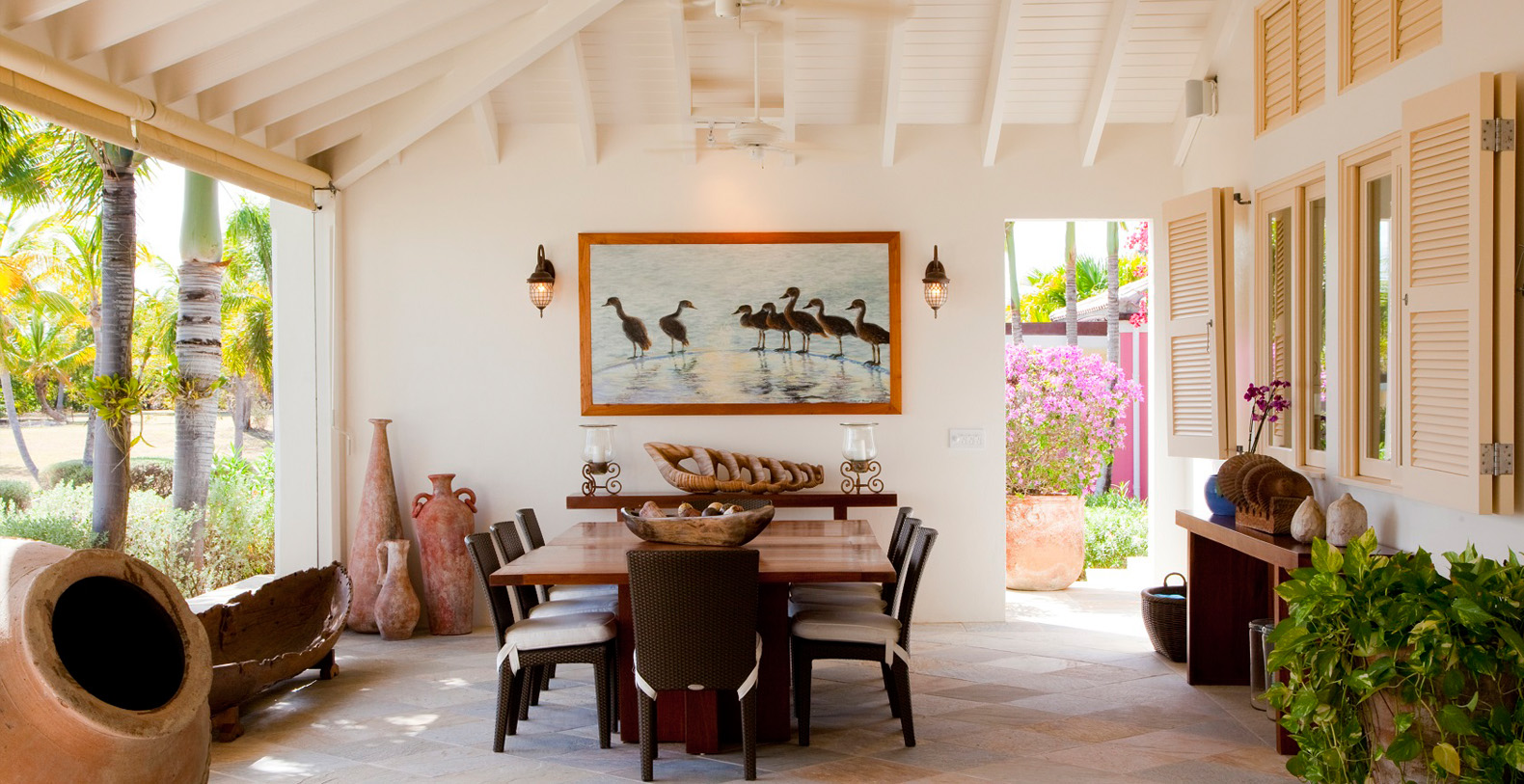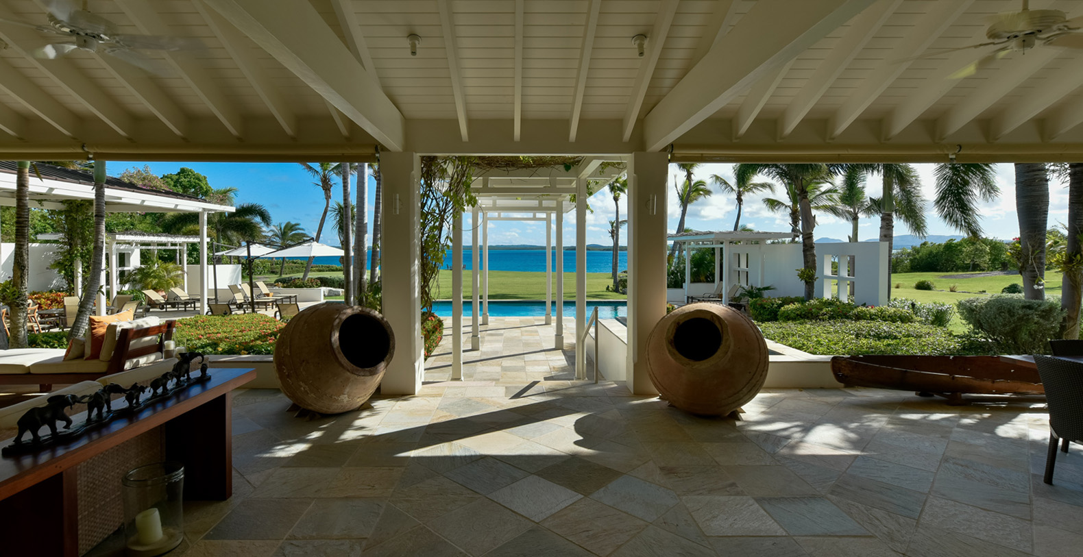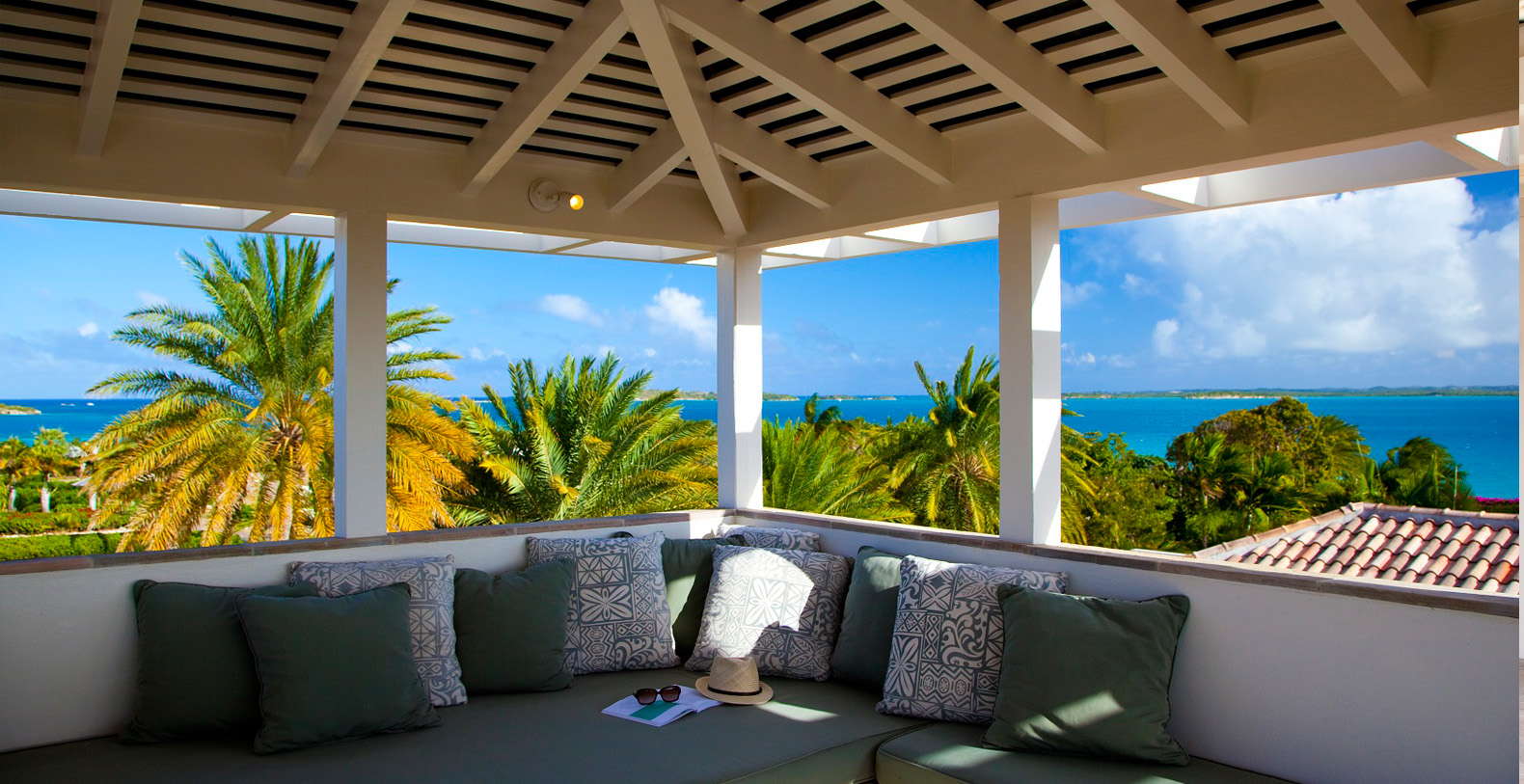 The home's most special feature is a magnificent third-story tower terrace. This look-out lounge offers panoramic views of Jumby Bay and neighboring islands and is the perfect spot for enjoying sunset cocktails, a good book or a rejuvenating nap.