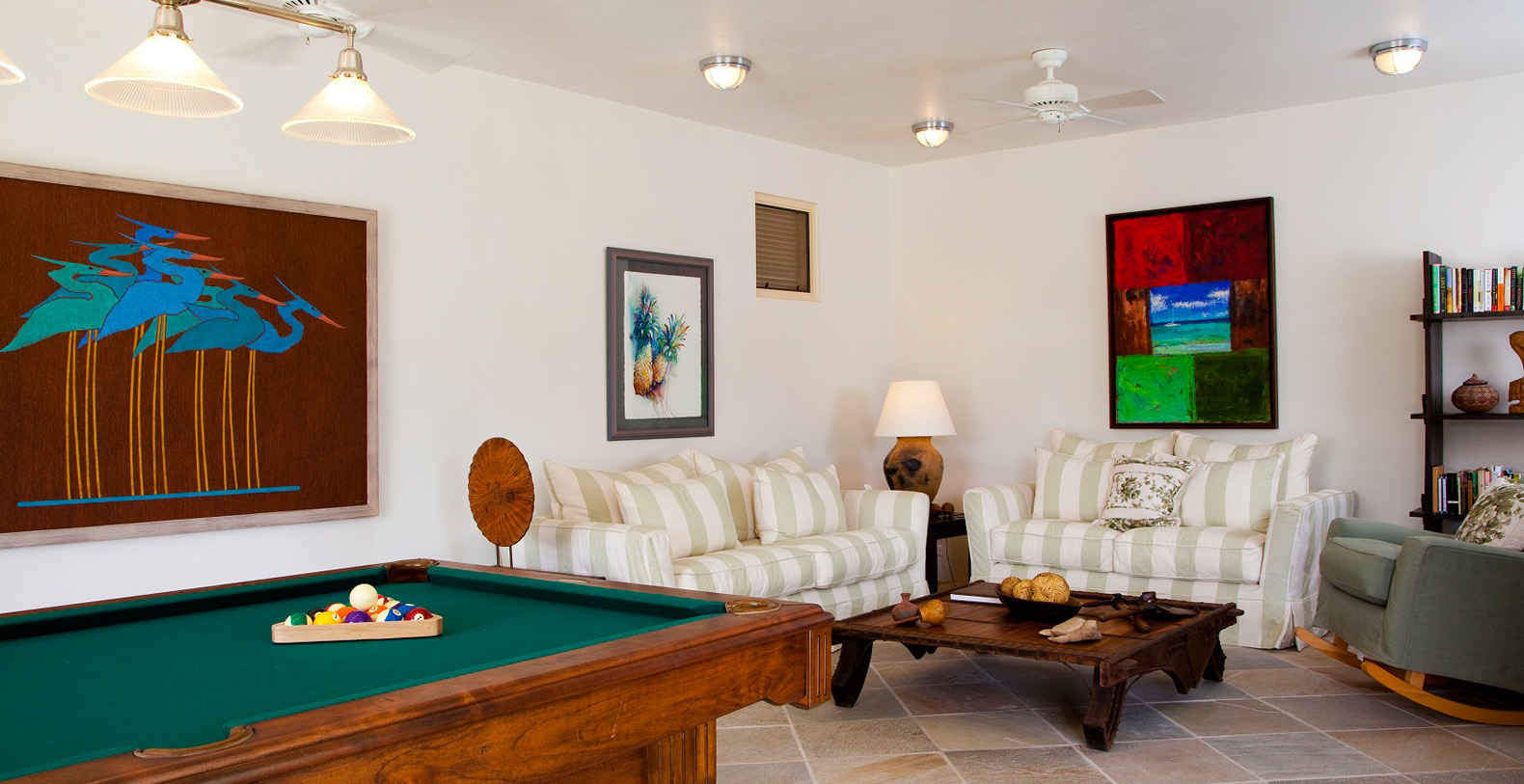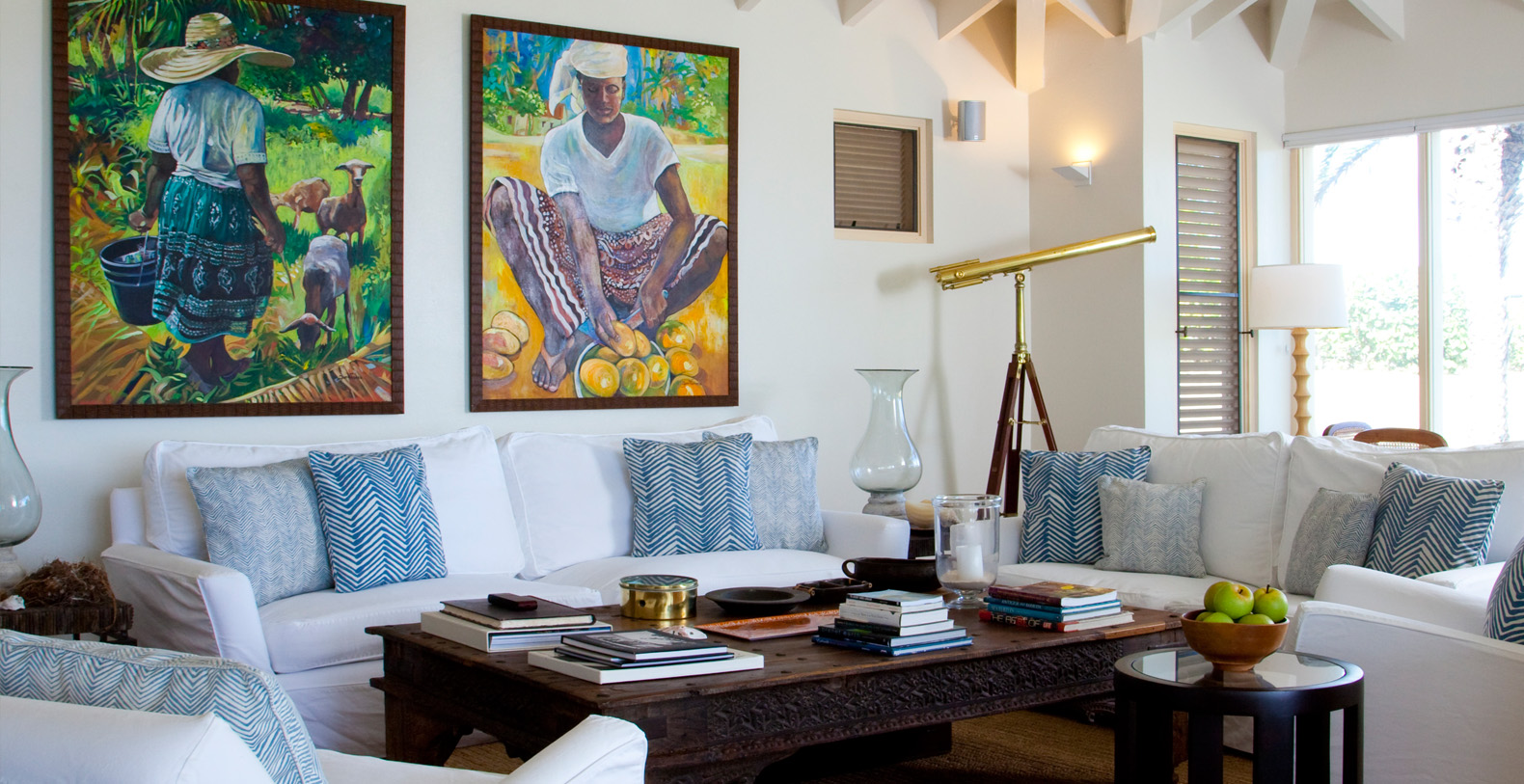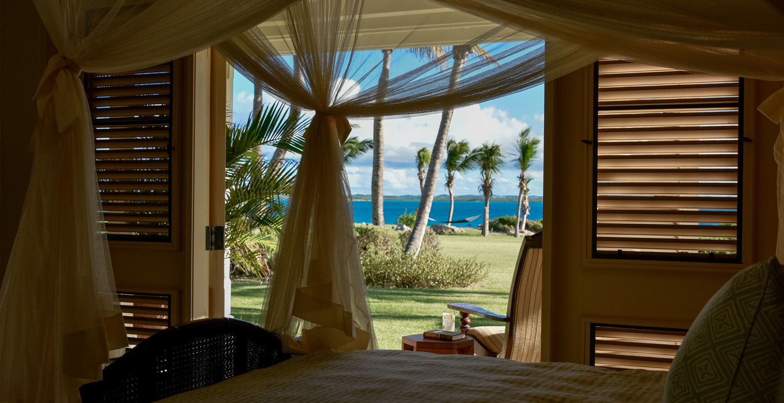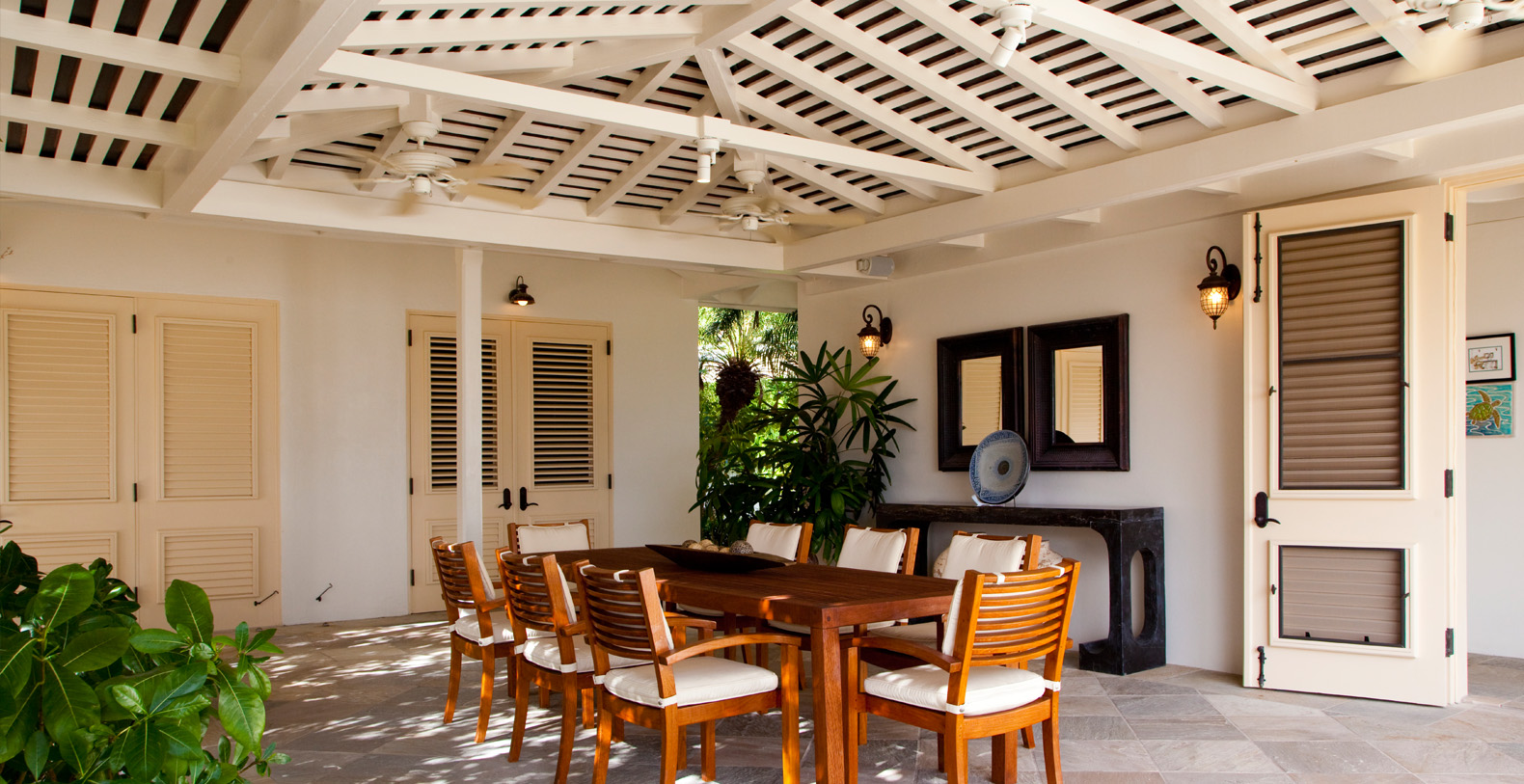 The home's most special feature is a magnificent third-story tower terrace. This look-out lounge offers panoramic views of Jumby Bay and neighboring islands and is the perfect spot for enjoying sunset cocktails, a good book or a rejuvenating nap.