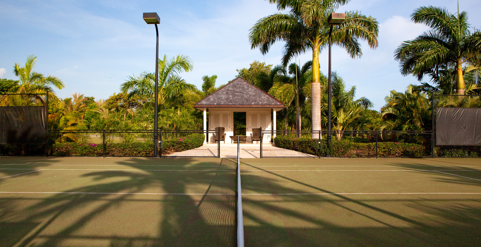 Just a few steps outside the living areas, the bedroom pavilion features four elegantly designed bedrooms. Each bedroom is a welcome retreat, appointed with fine furnishings, en suite bathrooms, television, air-conditioning and views of the ocean. A short stroll from the main house is a flood-lit tennis court with a pavilion for guests to enjoy.