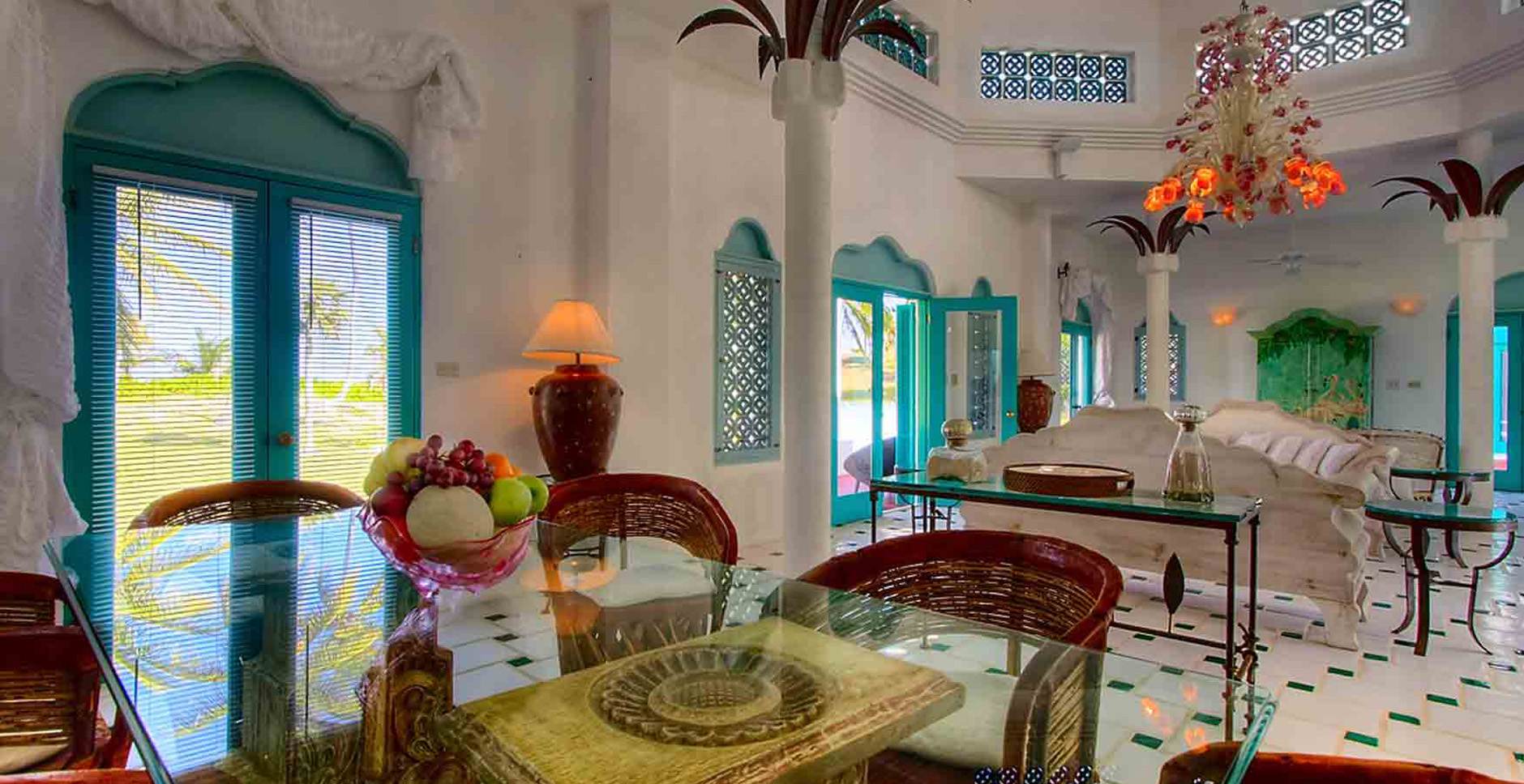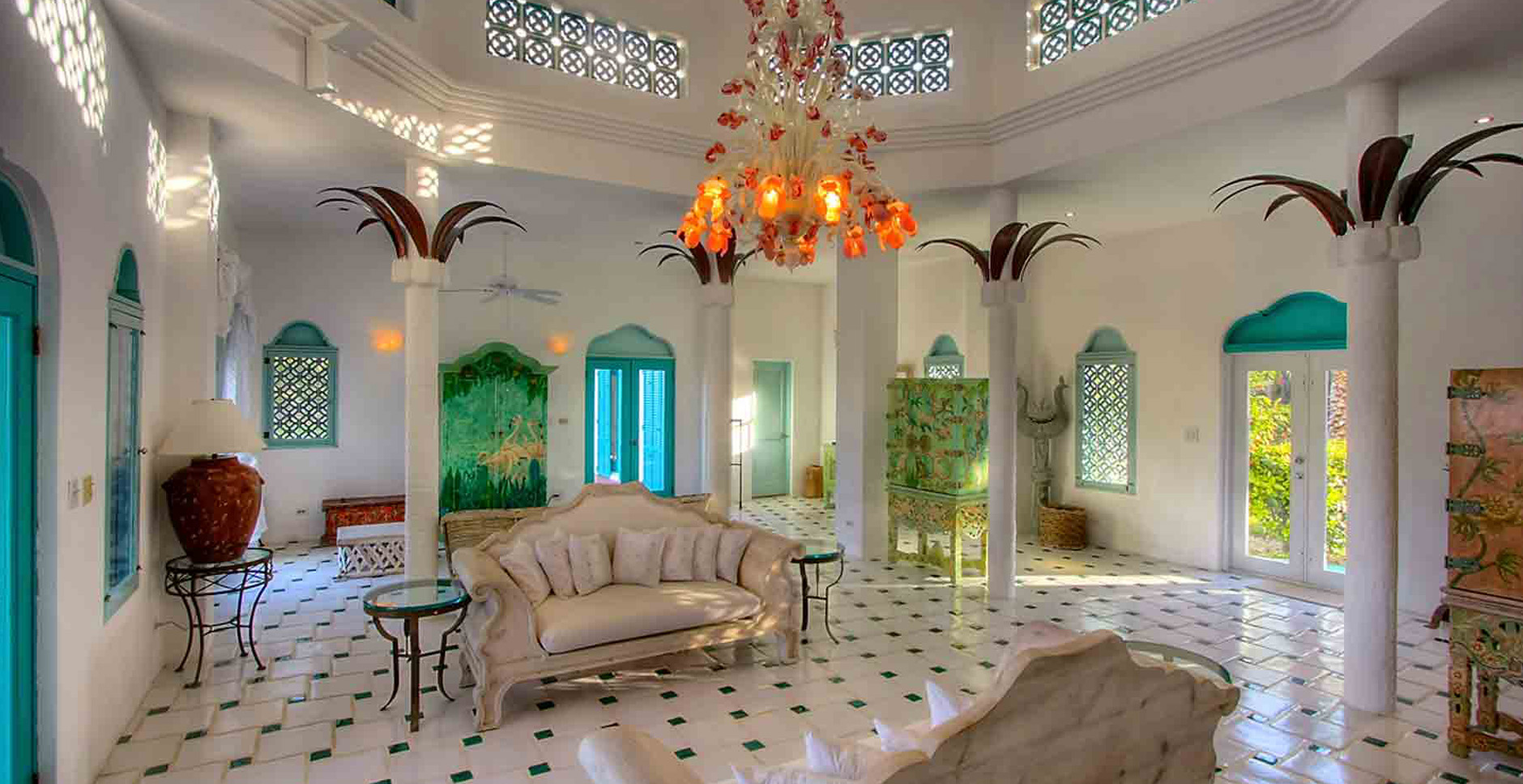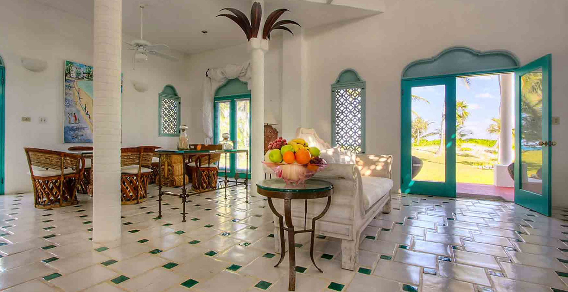 La Bougainvillea is a Moroccan style home with simple island charm. Beautiful Spanish tile floors throughout with accents of blue and green make each room feel warm and unique. The Villa sits on 30 beautiful acres covered with native flowers and Silver Palms. La Bougainvillea is a true paradise getaway.