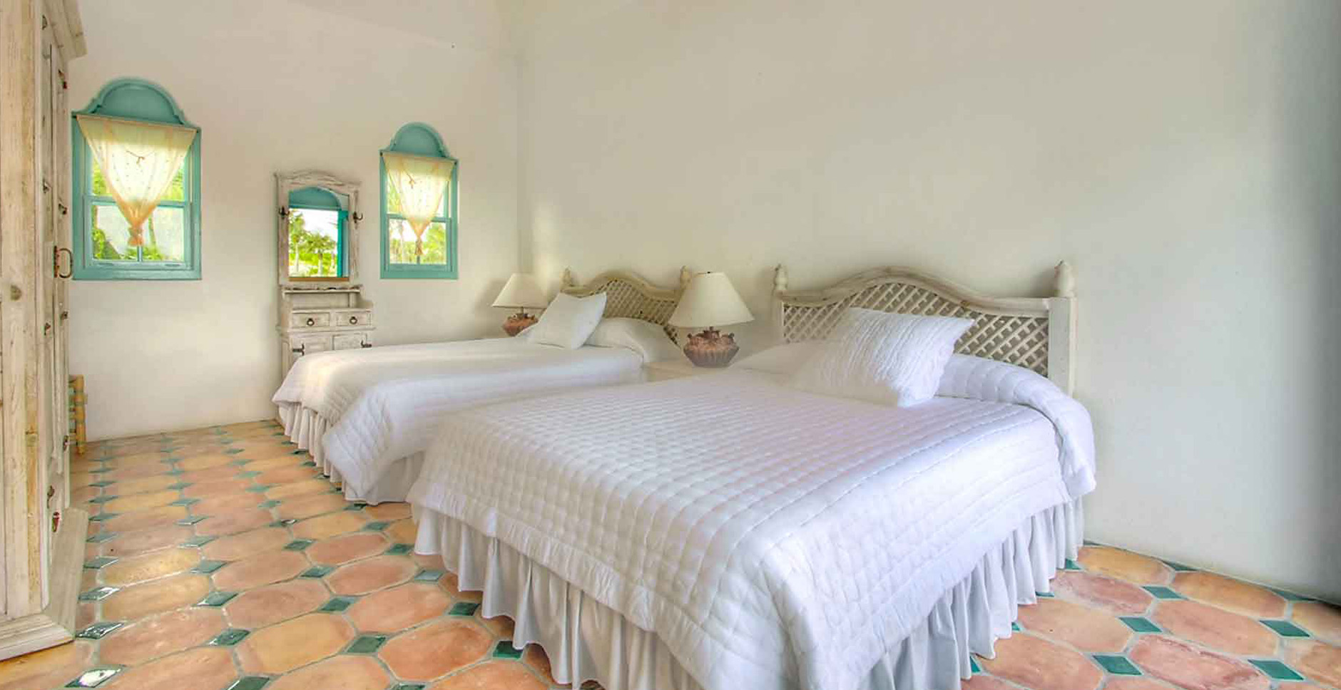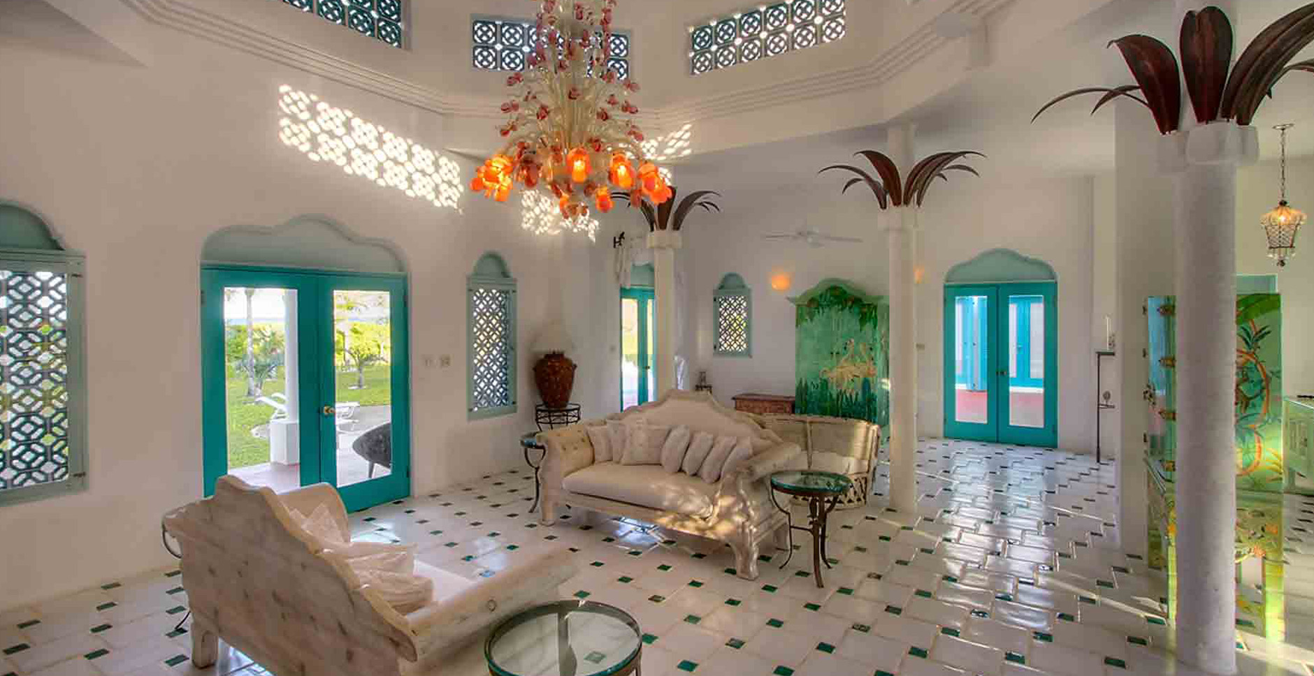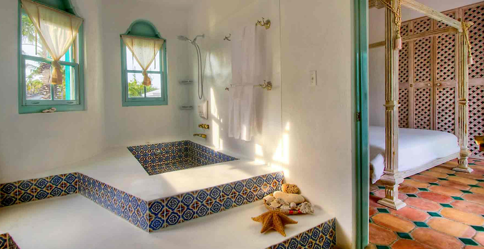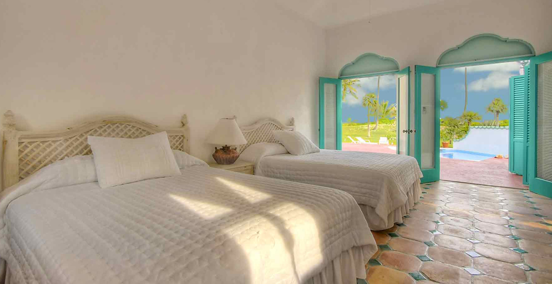 La Bougainvillea is a Moroccan style home with simple island charm. Beautiful Spanish tile floors throughout with accents of blue and green make each room feel warm and unique. The Villa sits on 30 beautiful acres covered with native flowers and Silver Palms. La Bougainvillea is a true paradise getaway.