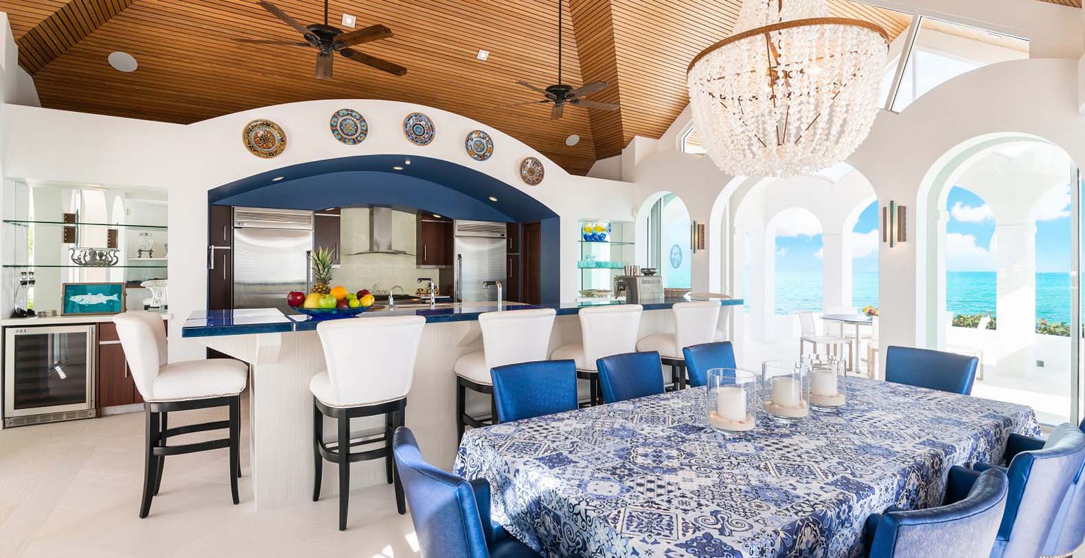 An exclusive, private villa where fantasy becomes reality! Perched on a windswept dune in south-eastern Providenciales, overlooking the rugged limestone terrain, the dark, iris rimmed horizon and pristine white sands of Long Bay Beach in the Turks and Caicos Islands, stands Mandalay – proud testament to barefoot elegance.