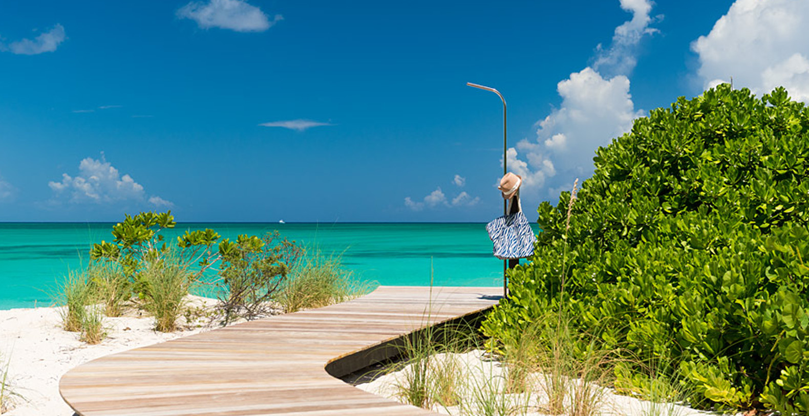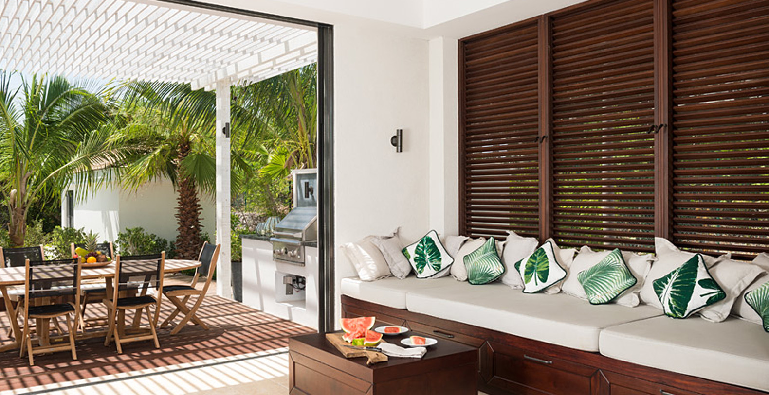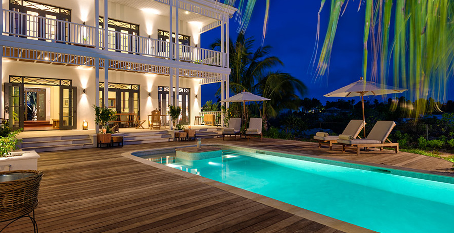 Outdoors, a 40-foot long heated pool is surrounded by Brazilian hardwood decking. Palm-framed pathways lead you to private sitting nooks and the soft sand of Grace Bay. A fully equipped watersports hut entices adventure off of its protected and private cove. An outdoor rain shower, fire-pit, lounge and dining areas, state-of-the art bbq are enhanced by spectacular lighting.