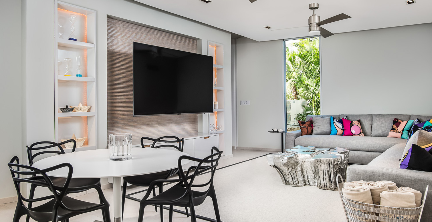 The house is wrapped in sand and extreme luxury. From the time you enter you'll know you have "arrived" with the front door opening right into a glass living room, which acts as a canvas onto the sand. The beauty continues as you enter to find the most modern masterpiece in the Caribbean. Each line of the house is defined to guide your eye from room to room, from the Captivating living area to the large gourmet kitchen. There is enough space for the private chef to give you a wonderful cooking adventure. There is no limit to the imagination of our staff, they are some of the most talented and always have a smile on their faces. From maids to chefs and concierge, you'll truly feel inspired.