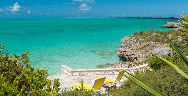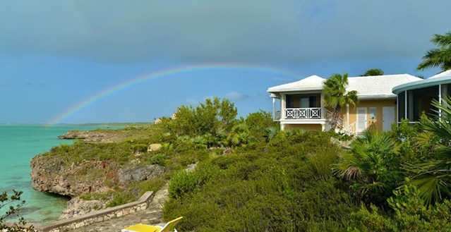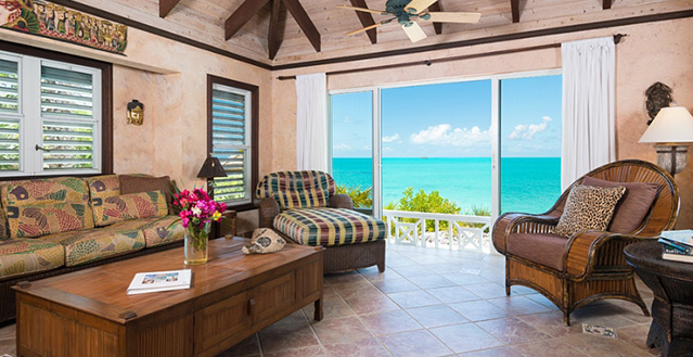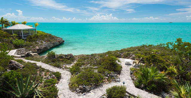 Panoramic views of the Caribbean Ocean provide the best sunrise and sunset viewing anywhere on Providenciales. Guests experience a level of comfort and privacy that is rare with any Caribbean villa. The South Seas Villa property spreads across four and a half acres of tropical landscaping and palm trees, with lush rock gardens leading down to the waterfront.