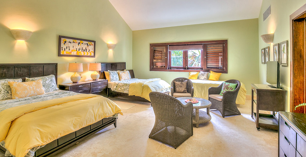 With a total of thirteen stunning bedrooms, Arrecife Estate 23/24/25 is an ideal site for a posh corporate retreat or a large family reunion of up to thirty guests. All of the bedrooms at this tropical villa feature en-suite bathrooms, dual vanities, televisions and ceiling fans. Access to the outdoors is a breeze!