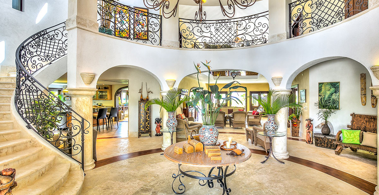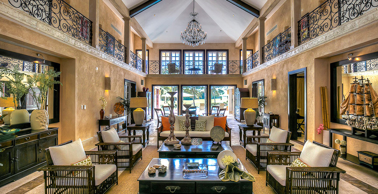 With fountains and overhanging vines, all the details of the exterior spaces of Arrecife Estate 23/24/25 have been chosen and arranged to provide a tranquil setting for conversations, board games or a round of cards. The interior spaces are palatial, characterized by two-story ‘inner courtyards’ with vaulted ceilings and surrounding balconies from where family members and friends can check out all the action below. Rich artworks and furnishings lend an airy gravitas to the atmosphere.