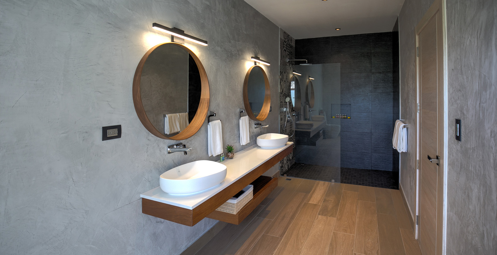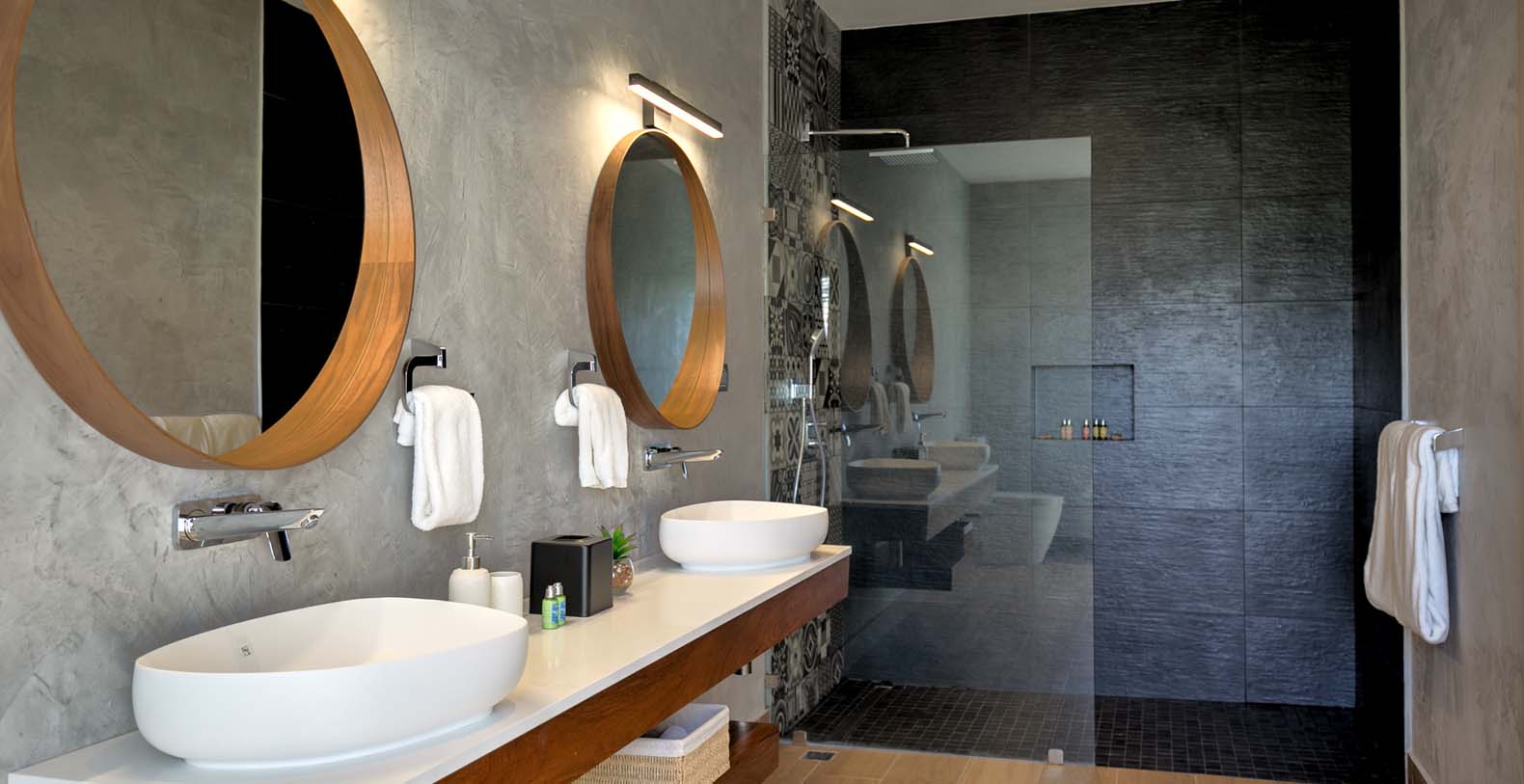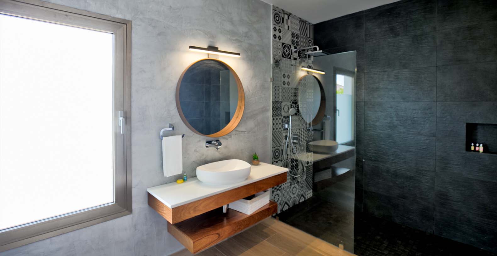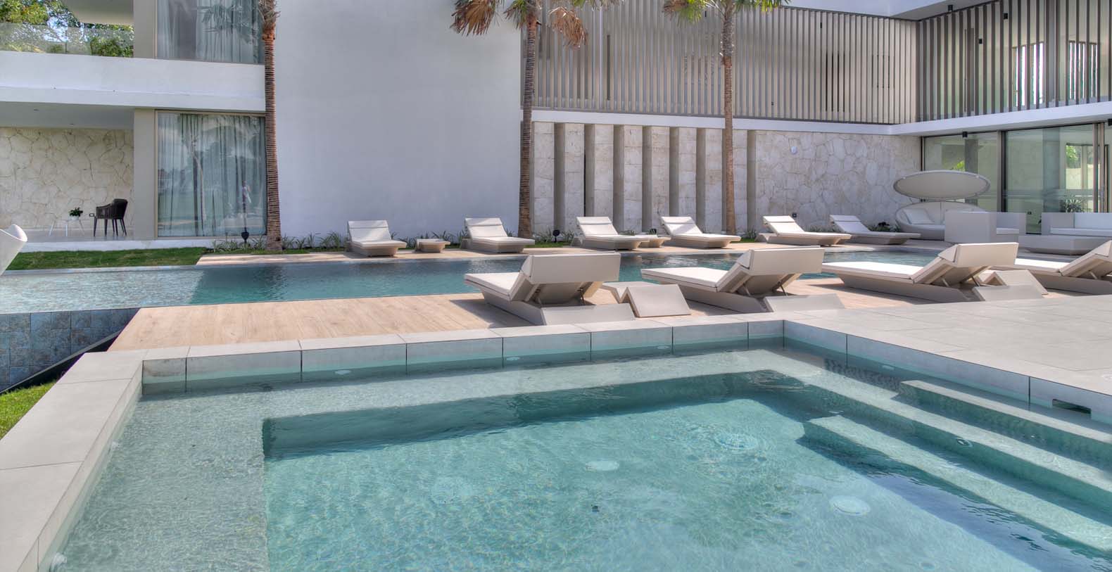 When going upstairs to the second floor you will find 7 of the 9 bedrooms. There are three master bedrooms with a King bed and an en-suite bathroom each, including a hot tub on the terrace. Then, you have 3 double bedrooms with 2 Queen beds and en-suite bathroom each and the seventh bedroom, ideal for families, has 2 Queen beds and 2 Twin Bunk Beds with its en-suite bathroom. Finally, when going downstairs you will find the eighth bedroom, with a King Bed and en-suite bathroom next to the last bedroom, with 2 Queen beds and en-suite bathroom.