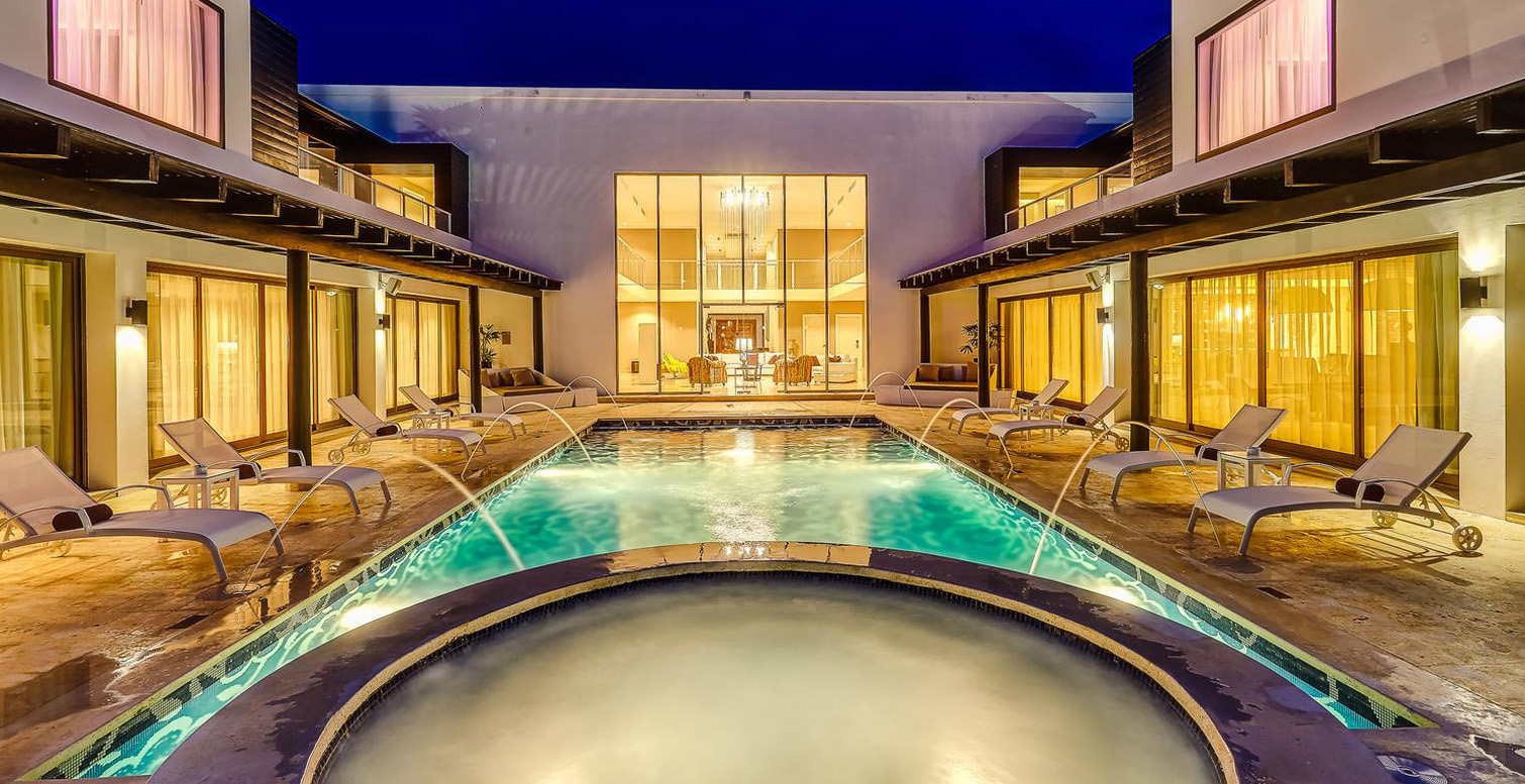 Imagine a luxury house for the exclusive use of you and your group, make it your reality with the CHIC Mansion, an 11,500 square-foot luxury mansion with stunning six suite-style rooms. This All-Exclusive™ Mansion offers a breathtaking living room with floor-to-ceiling windows that look out onto your private pool, an exclusive dining room and premium extras like your own fully-stocked bar with top-shelf liquor. The exquisite architecture and sleek décor of this Mansion creates an ambiance of class and privilege meant groups of friends to enjoy together