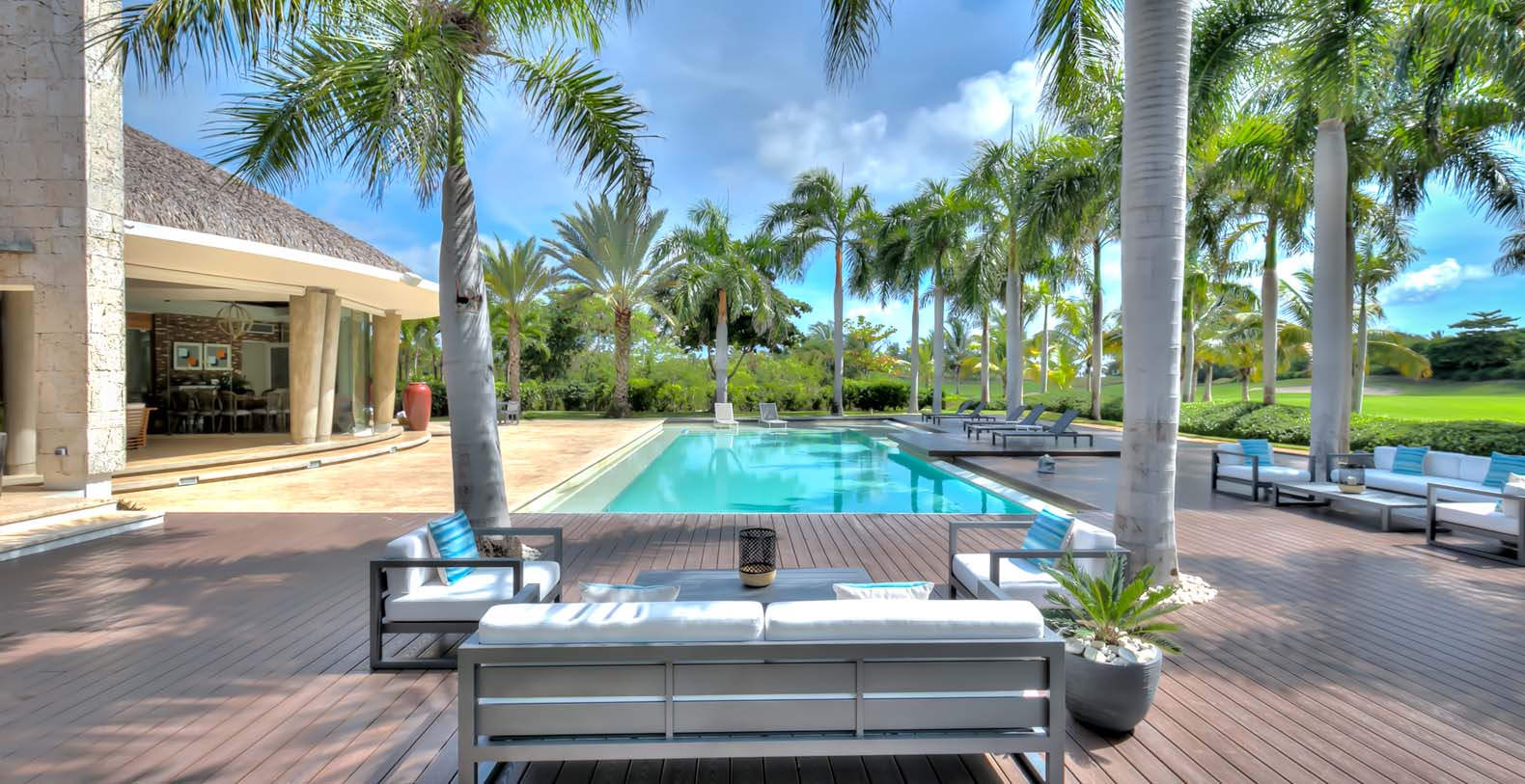Tucked amid lush vegetation and offering aloofness and privacy from the nearest neighbors, Corales 60 is your very secluded luxury shelter with 6 individual bedroom cottages, ideal for families, large groups of friends or couples. Welcomed by the dancing evergreen palm trees, this state-of-the-art villa has wide golf views, a modern atmosphere, and the perfect balance.