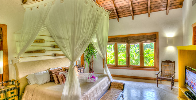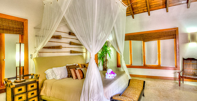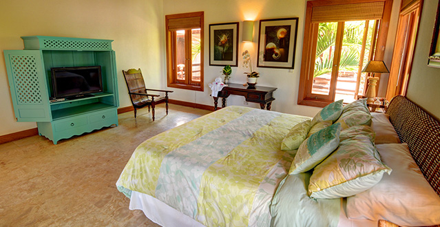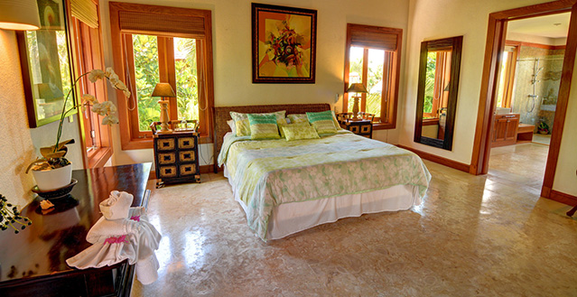 The master bedroom includes a king size bed as well as the two other bedrooms on the second floor, while the other one bedroom located on the first floor features a queen bed. All rooms include air conditioning, flat-TV screen, private bathroom and walk-in closet.