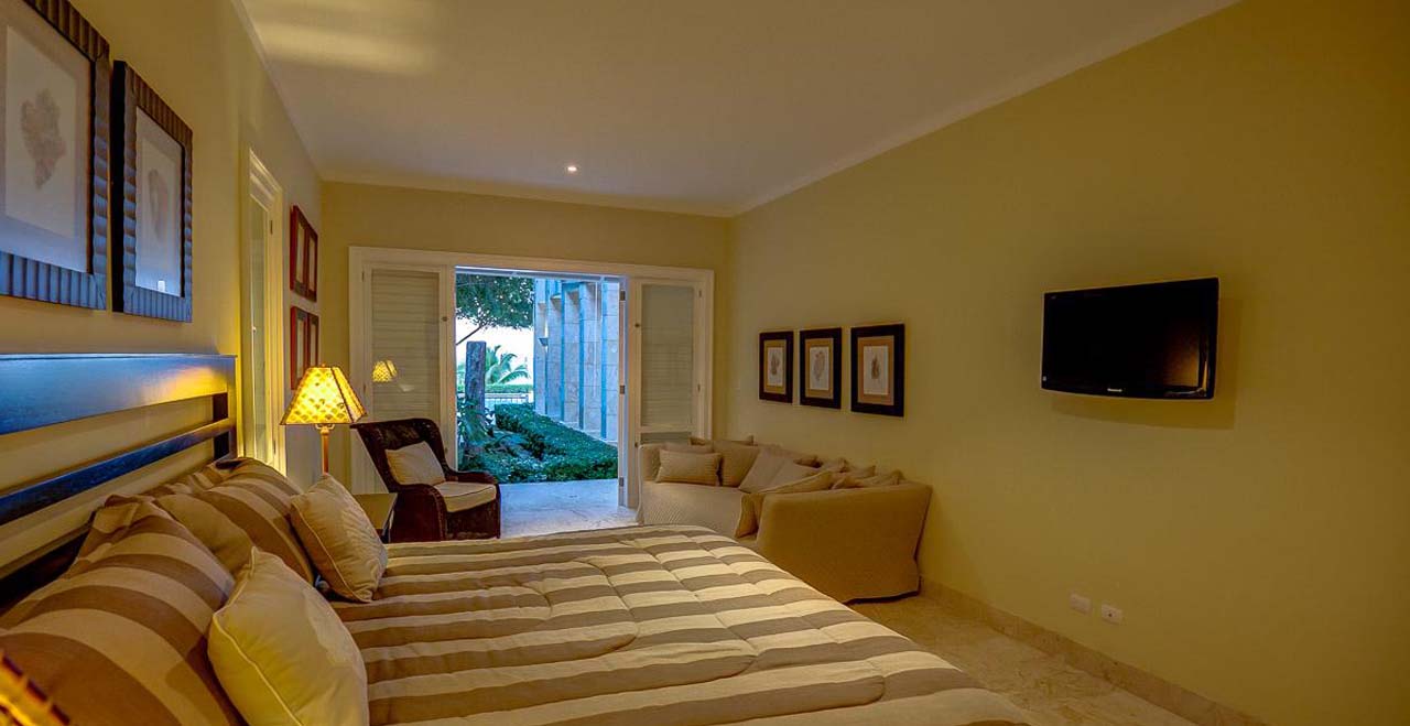 Marina 4 in Punta Cana's famed resort is an idyllic villa that presents you with one of a kind accommodation luxury experience! The master bedroom includes a king size bed looking front of the ocean, with an open space bathroom, walk-in closet. Another 4 bedrooms suites, two with a king size bed and two with a two-queen size bed each, all bedrooms but one are equipped with flat TV, books library, walk-in closet.