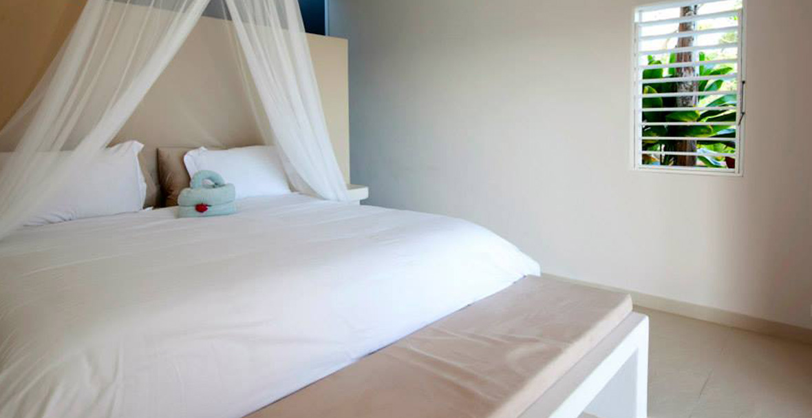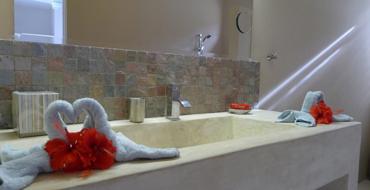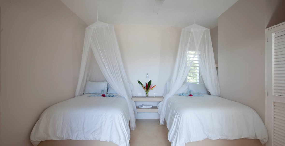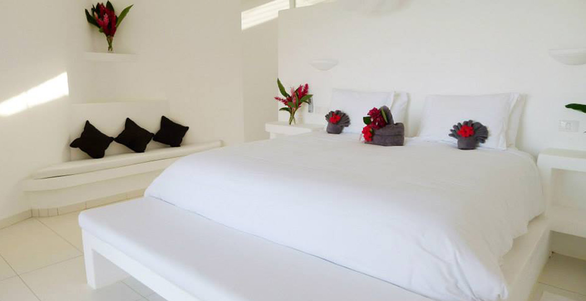 Groups of up to 10 people will enjoy the five luxury suites, each with en-suite bathrooms, a private terrace, and expansive views of the sea. Each of the spacious rooms has a unique design, five with king beds, and one with two full beds. The two master suites offer open-air tropical garden showers, and all rooms have pillow-top beds with fine linens and duvets. The bathrooms are supplied with plush bath sheets, towels and washcloths. There is a large supply of beach and pool towels, and in addition to the lounge chairs poolside, a supply of portable lounge cushions will enable you to relax in the sun anywhere on the property.