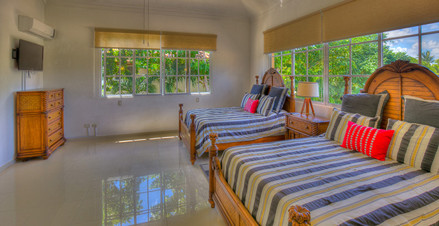 The master bedroom includes a king size bed, the other 3 bedrooms include 2 queen size beds each.