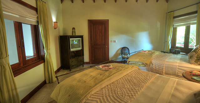 The master bedroom includes a king size bed as well as two other bedrooms, one bedroom includes two queen beds, and at last the children room with 2 queen beds plus 2 extra queen trundle beds below. All rooms include air conditioning, Tv's with international cable channels, private bathroom and walk-in closet.