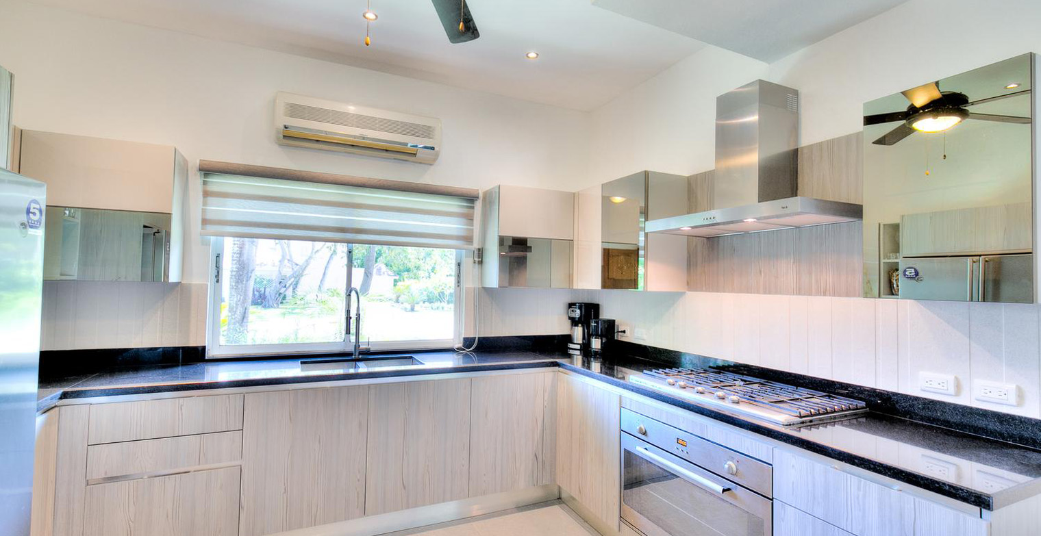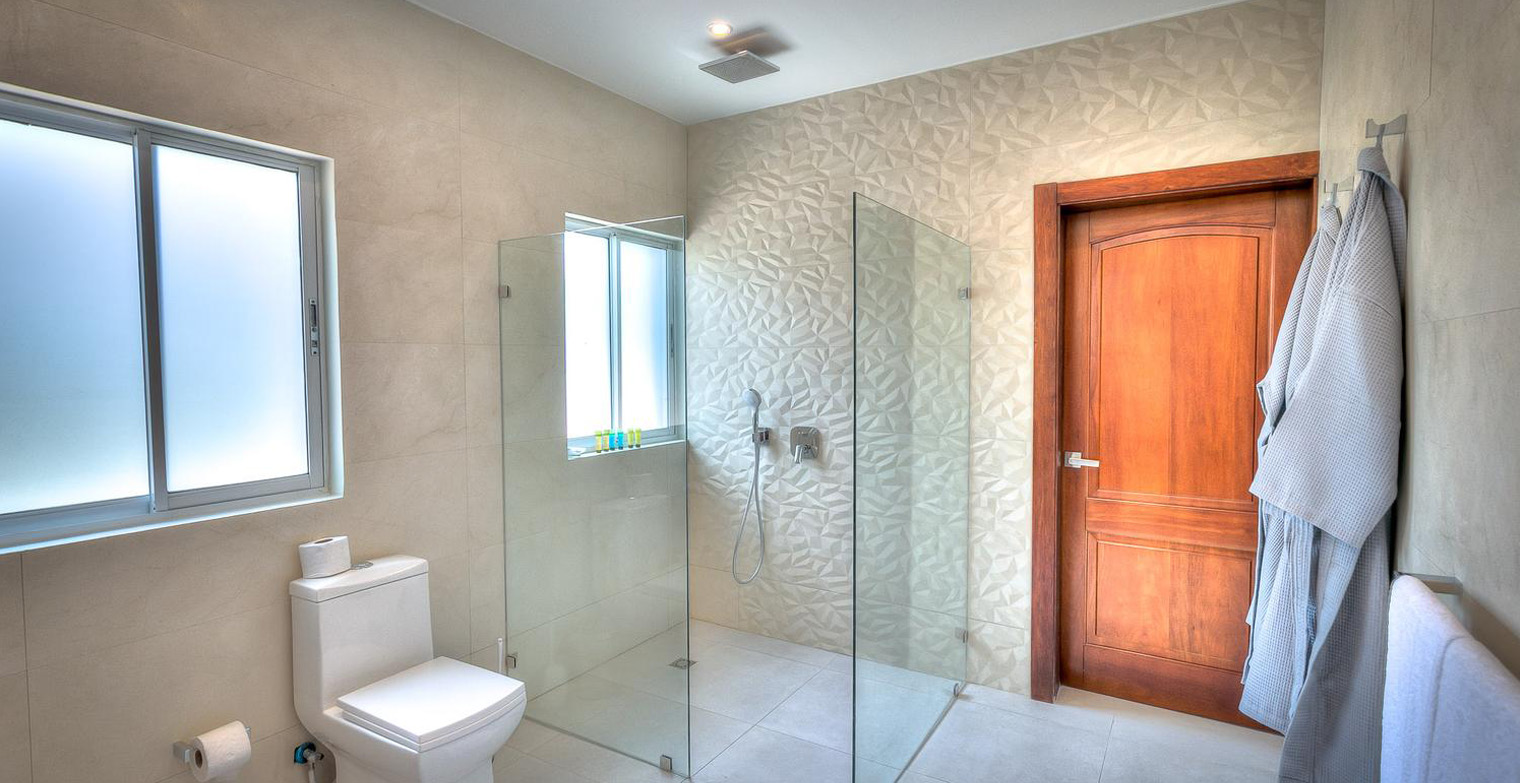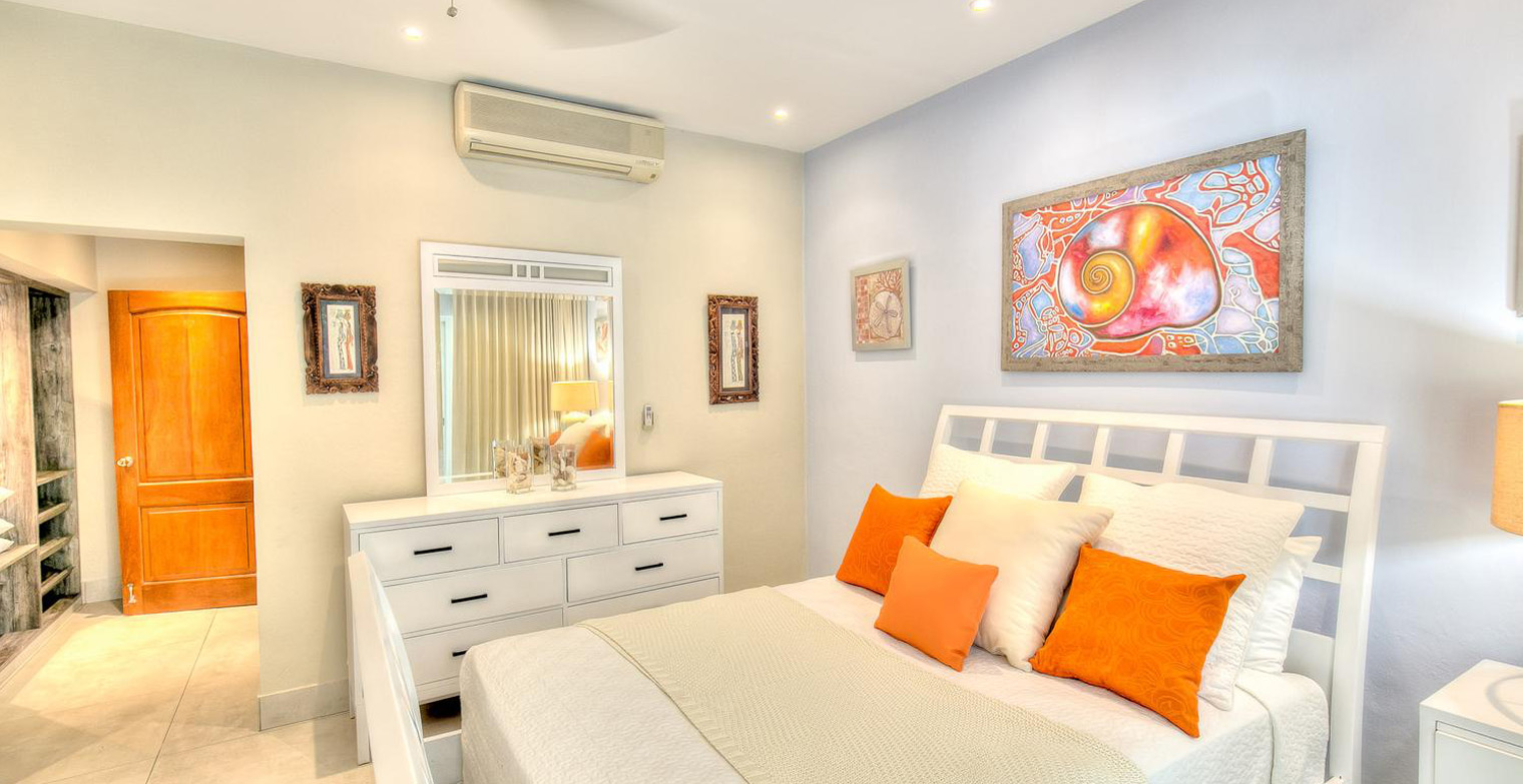The master bedroom includes a king size bed, two rooms with queen beds and one room with two queen beds. All rooms includes air conditioning, three have flat TV screens, all with private bathrooms and closets. Fully equipped kitchen, extensive living room terrace & dining room, private courtyard and swimming pool.