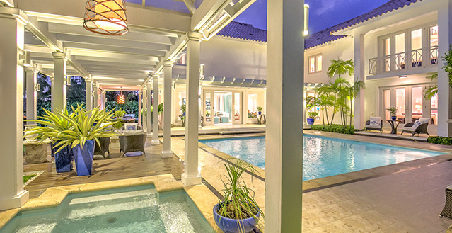 The house is built to the standards of the luxury traveler with beautiful amenities and amazing host and concierge who will help with any of your needs. The master bedroom includes a king size bed, as well as the second bedroom. The third bedroom has a queen size bed and the fourth bedroom features two queen beds. All rooms include air conditioning, private bathroom and walk-in closet. Two of the bedrooms feature a flat screen TV. Fully equipped kitchen, extensive living room terrace & dining room, private courtyard with stunning swimming pool.