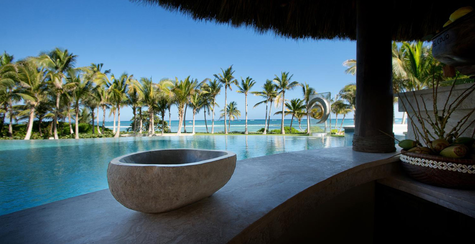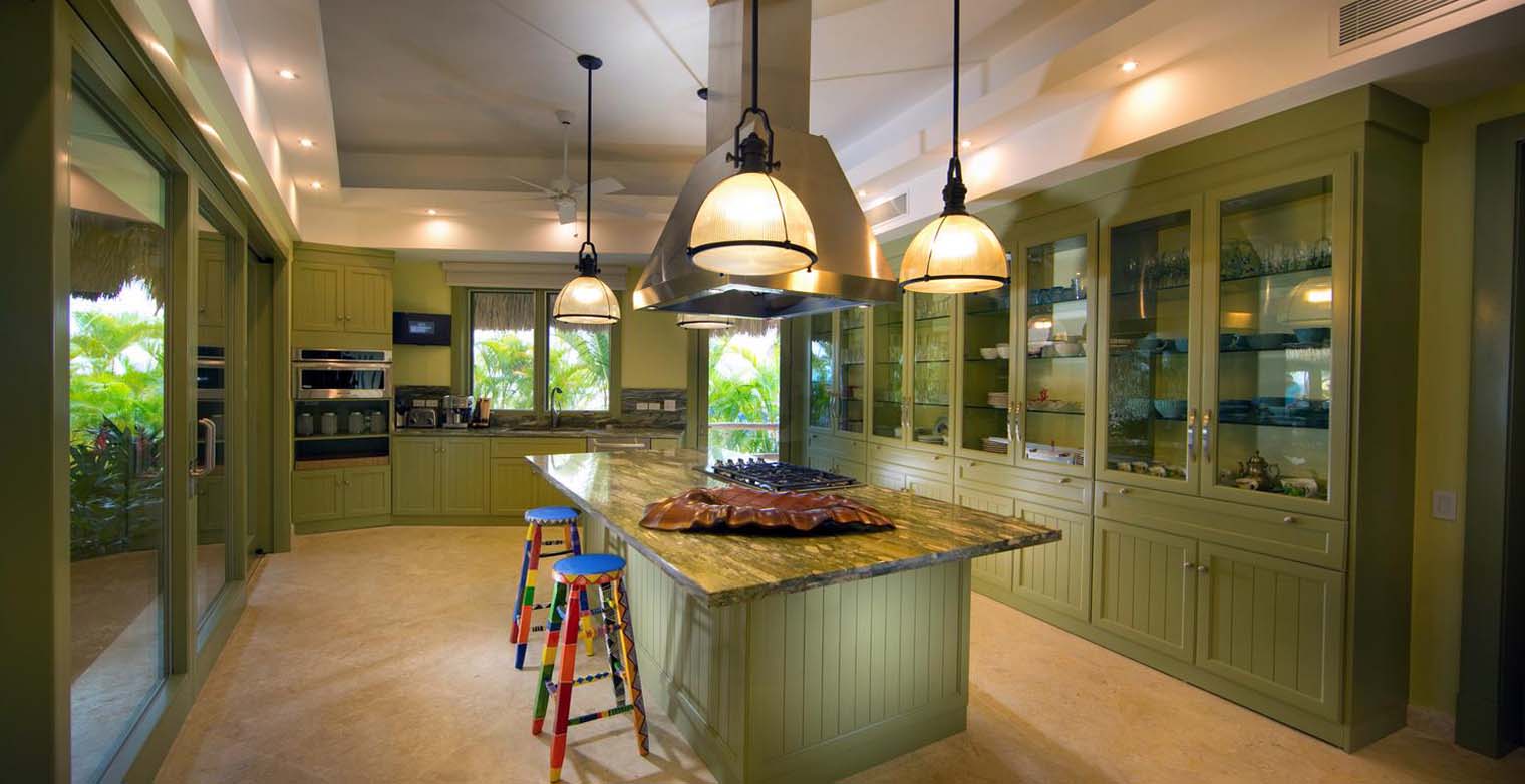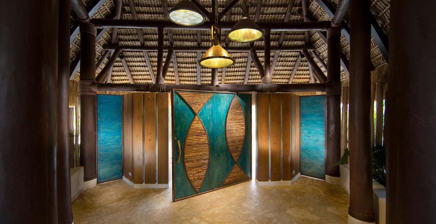 The task was not easy, yet fun. “With this background as inspiration I was able to unleash my imagination, but at the same time keeping a coherent design, which had to unify and captivate elegantly the villa’s spirit. I wanted to reflect joy, since this is a vacation home and fantasy”, tells Patricia Reid. She achieved it! This residence smells like adventures, unforgettable memories, travel experiences, color and joy. The spectacular interior patio grasps the tropical nature, with its palm trees and leafy vegetation. The interior designer states that she wanted to reflect joy. Its open spaces let the tropical green exuberant enter, which tones are repeated in the interiors through finished colors along wall techniques, cushions and embroideries.