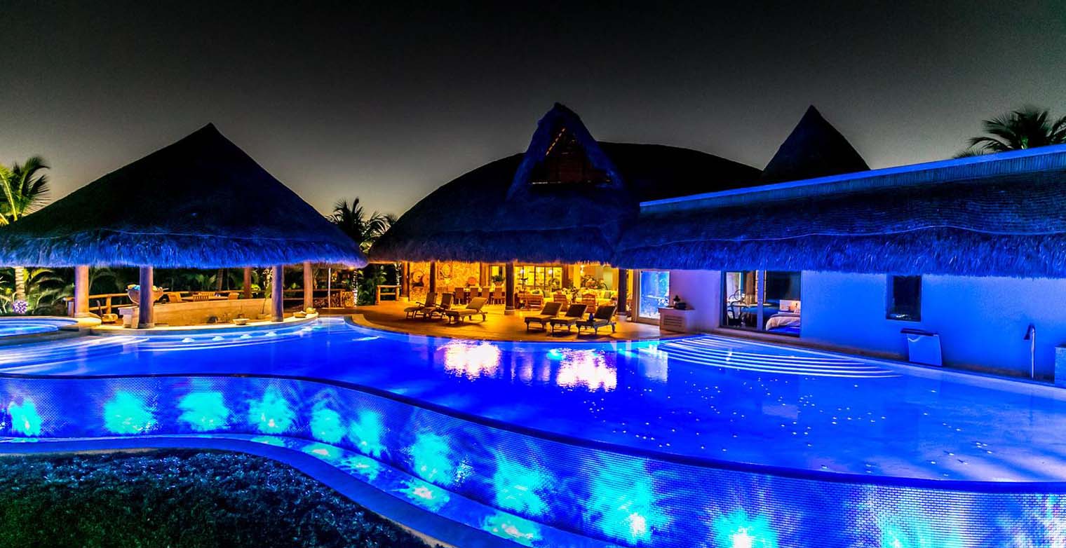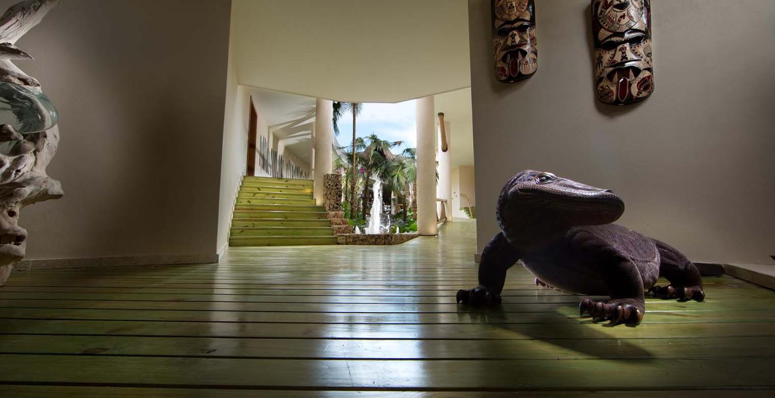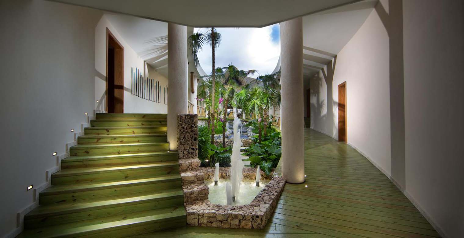 The task was not easy, yet fun. “With this background as inspiration I was able to unleash my imagination, but at the same time keeping a coherent design, which had to unify and captivate elegantly the villa’s spirit. I wanted to reflect joy, since this is a vacation home and fantasy”, tells Patricia Reid. She achieved it! This residence smells like adventures, unforgettable memories, travel experiences, color and joy. The spectacular interior patio grasps the tropical nature, with its palm trees and leafy vegetation. The interior designer states that she wanted to reflect joy. Its open spaces let the tropical green exuberant enter, which tones are repeated in the interiors through finished colors along wall techniques, cushions and embroideries.