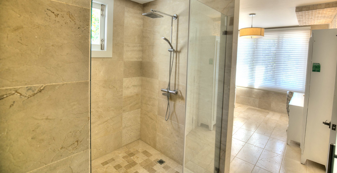 On the upper floor, you have 3 bedrooms, one is the master bedroom with a king size bed and the other two with a queen-size bed each. All three bedrooms have their own ensuite bathroom and flat TV.