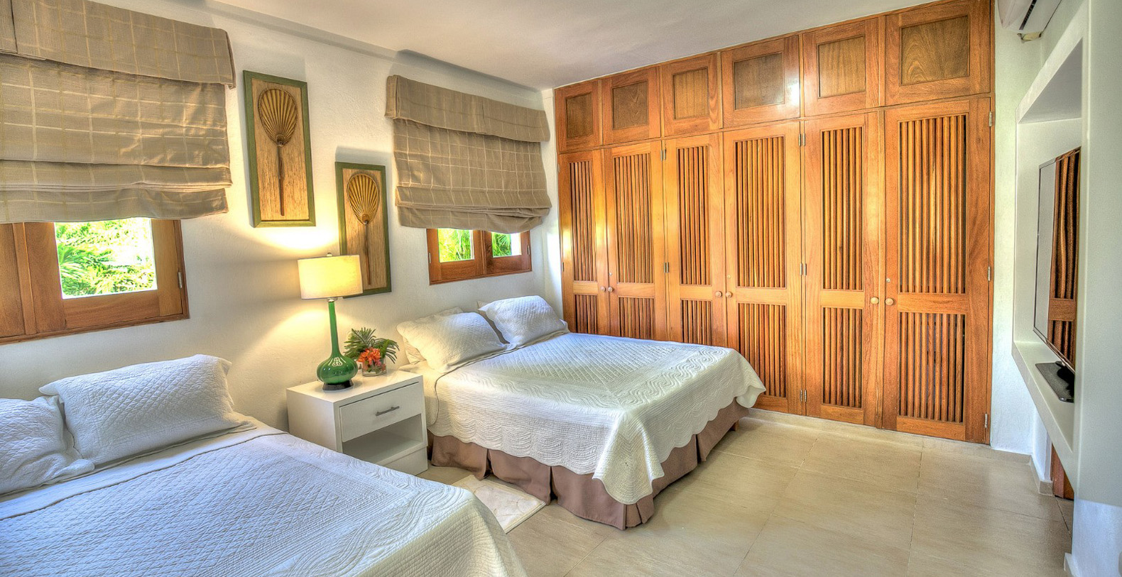 The five bedrooms are divided between the two floors. A master suite is on the upper level with king bed and balcony access in addition to a large and opulent ensuite bath. The remaining bedrooms feature either one or two queen suites, and all have private baths. A stay in the Villa Tortuga Bay C28 includes the services of a housekeeper and gardener, as well as providing access to many of the resort's impressive amenities.