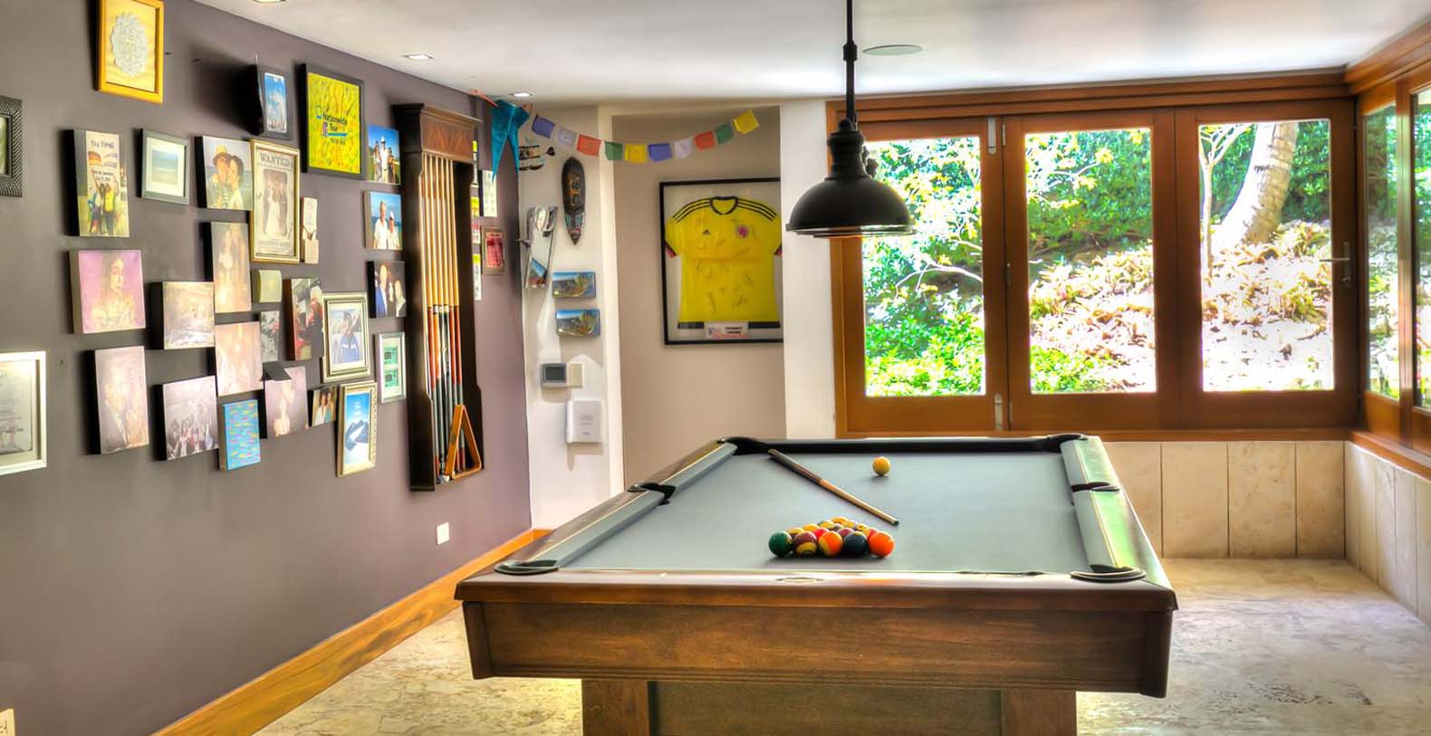 The outdoor furniture under the pergola next to three hammocks swinging gently to the beat of the sea breeze offer the guests the summit of relaxing. From the pool and the jacuzzi, the views are simply mesmerizing and can we enjoyed from the loungers inside the water while the kids have fun in the playground. For entertainment, everybody has multiple options: from a pool table game to watch a movie inside the comfy home cinema or for loosening up, the massage room and the fully-equipped gym have all the equipment guests need.