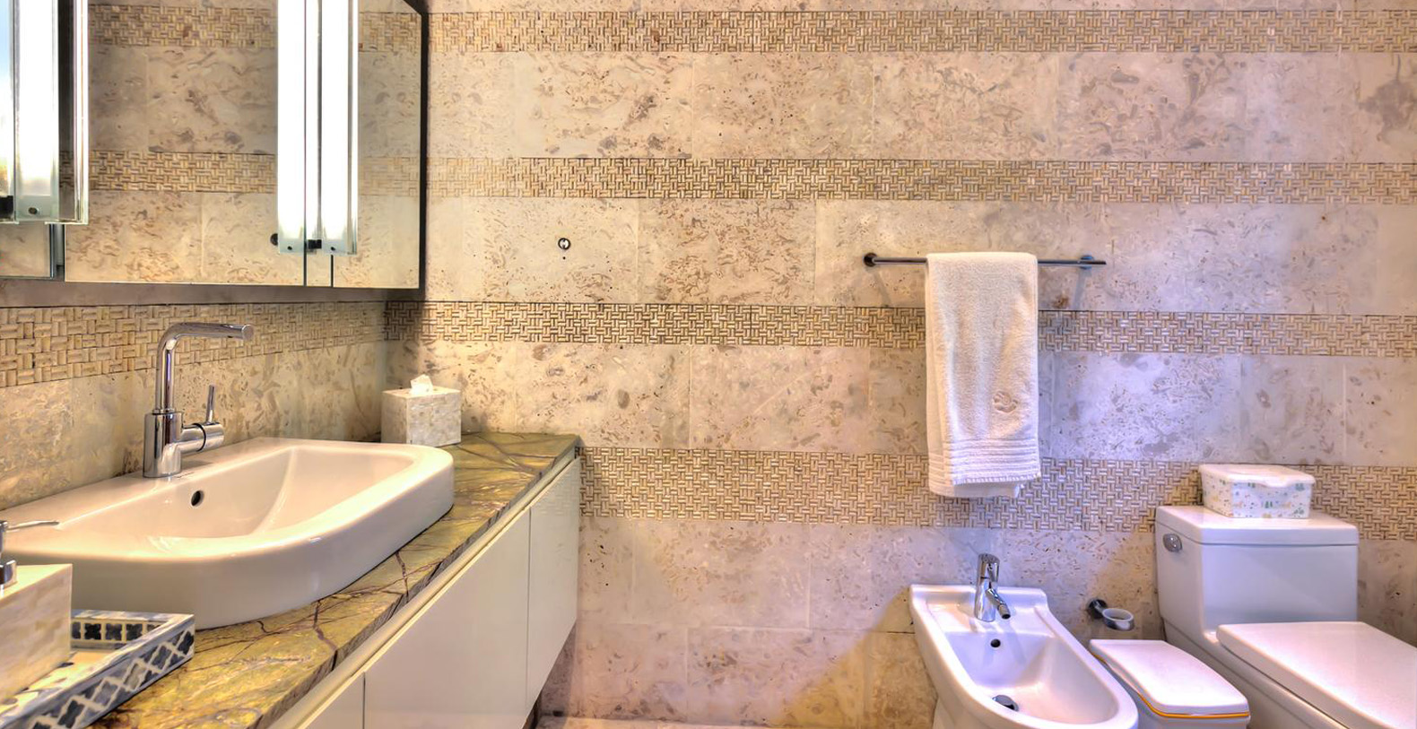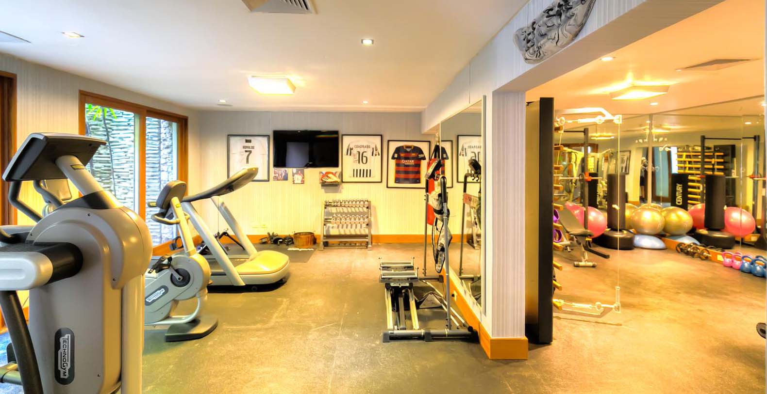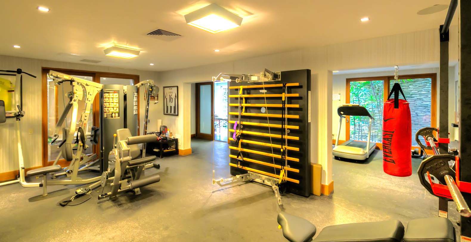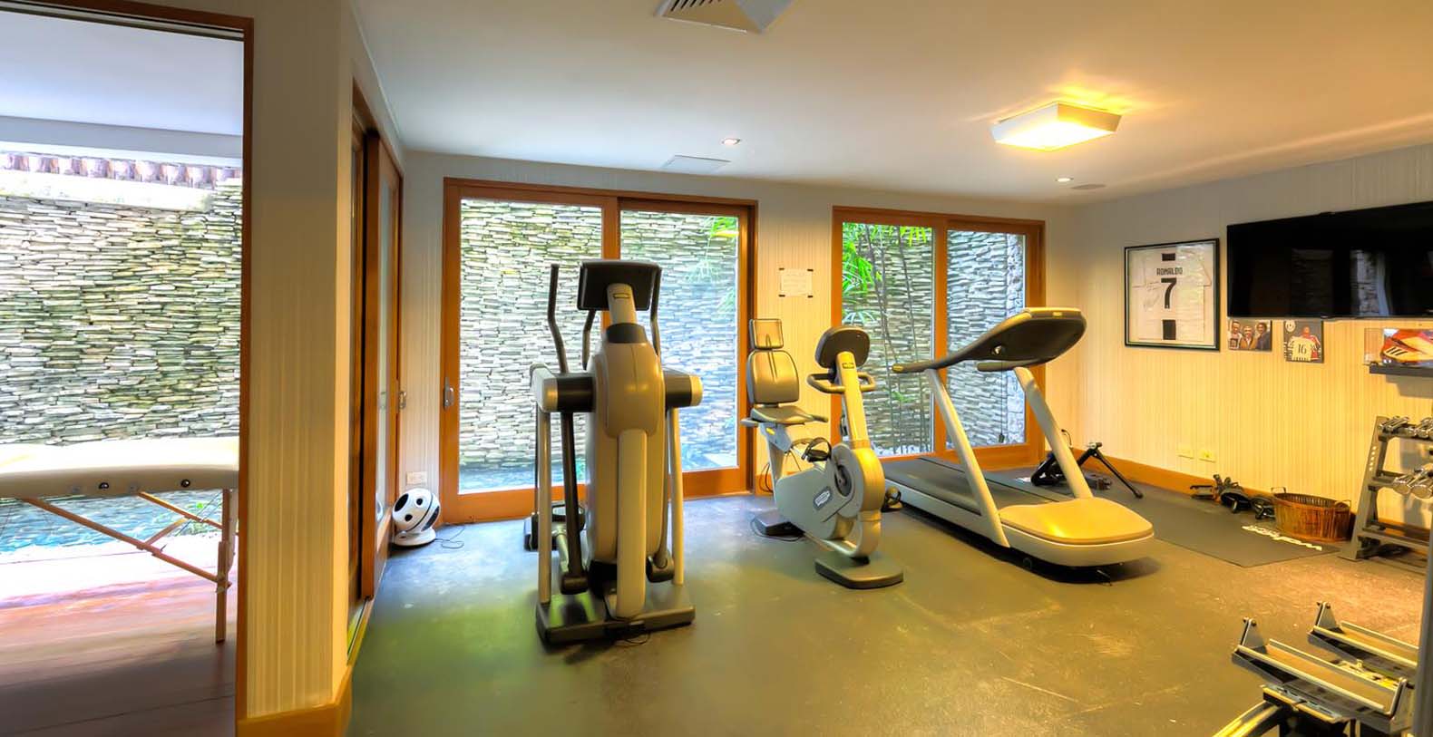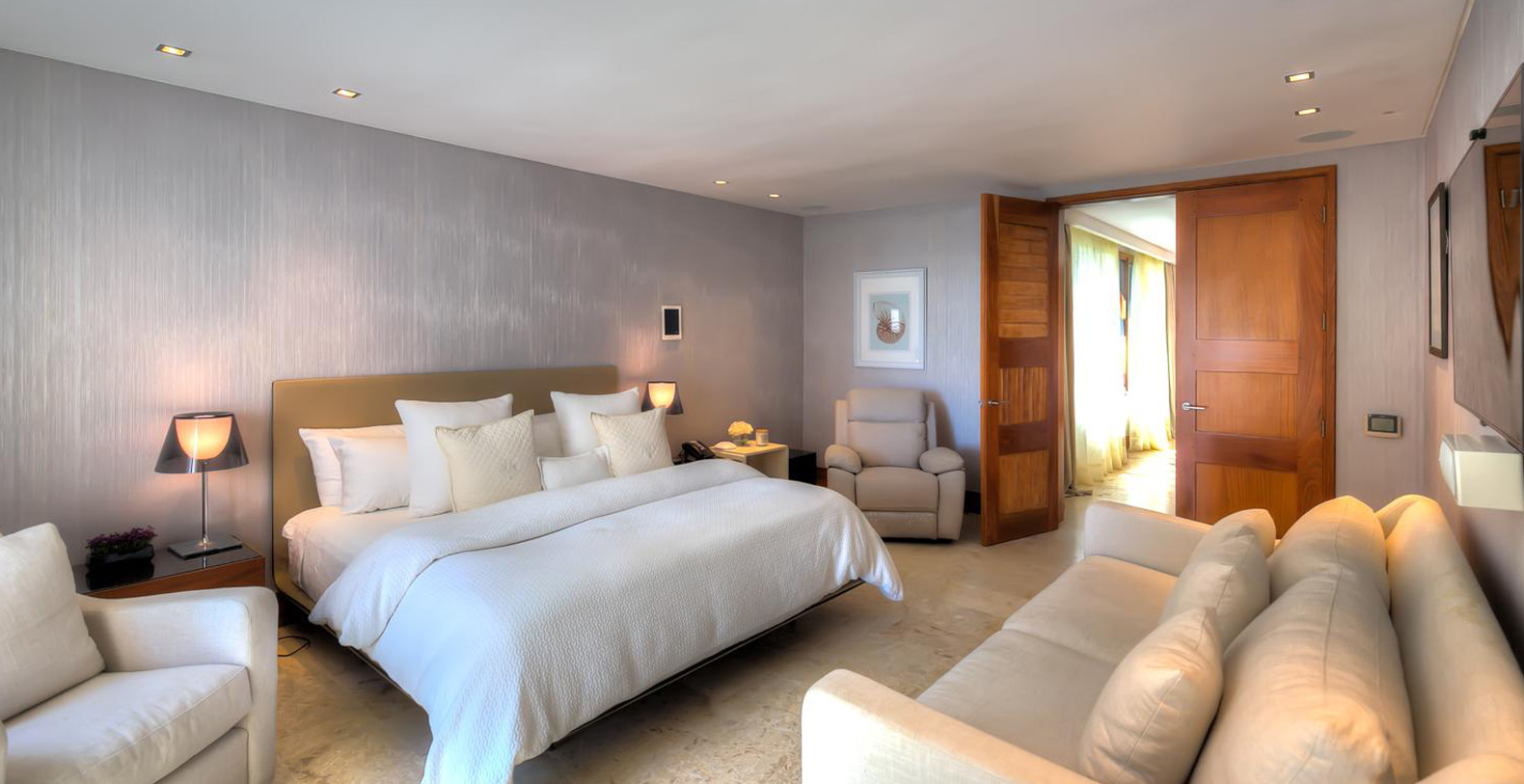 On the ground floor there a bedroom with a queen bed. On the second floor, 5 bedrooms are ready for a nap or an excellent sleep. The master bedroom has a king bed, 3 bedrooms with queen beds, the fifth bedroom with 2 twin beds. They all have ensuite bathrooms and air conditioning, and open to a balcony or terrace. Guests can get to the second floor, gym, and massage room using the elevator.