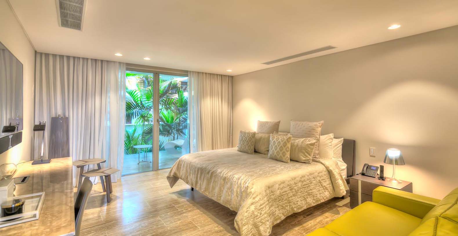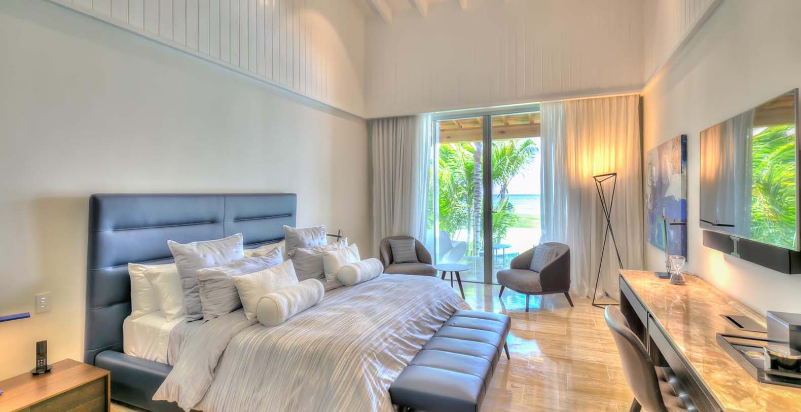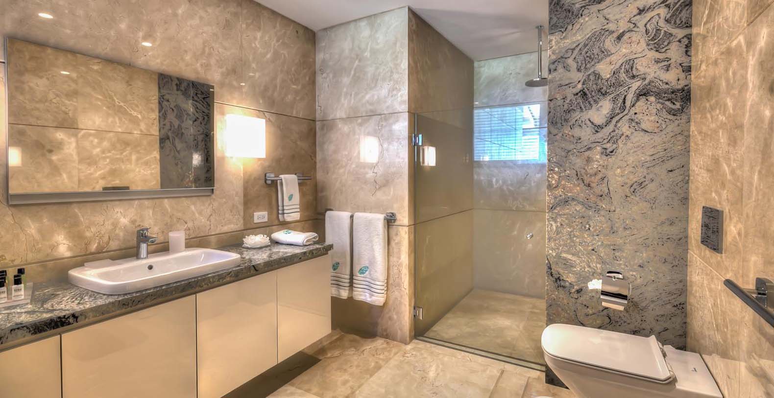 When the sun goes down, energy needs to be pumped up! On the second floor of the main villa, that can we reached with the elevator, you have the master bedroom with a king bed, ensuite bathroom with a tub and amazing views to the garden and ocean. The second and third bedrooms have a king bed and an ensuite bathroom each. On the first floor, the fourth bedroom has 2 queen beds and the fifth and the sixth bedrooms have 1 king bed each. They all also have an ensuite bathroom each. Finally, in the guest house on the second floor, we have the seventh bedroom with a king bed and the eighth bedroom with 2 queen beds. Both have an ensuite bathroom each.