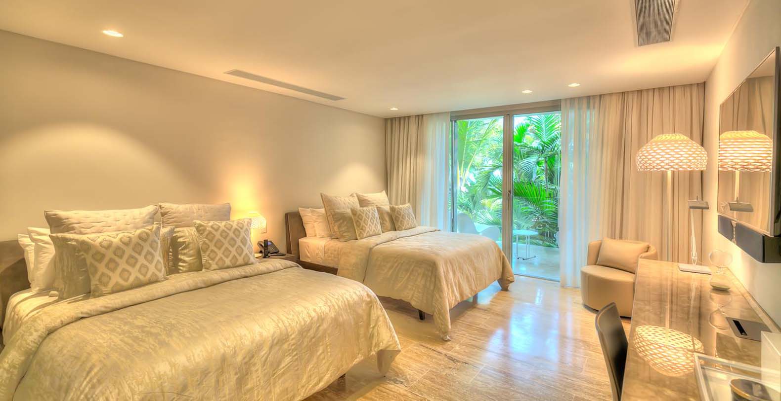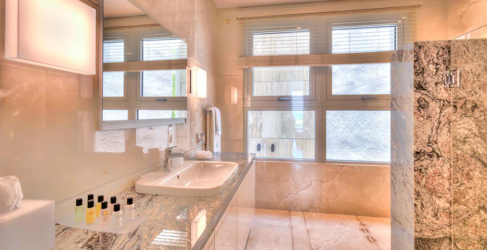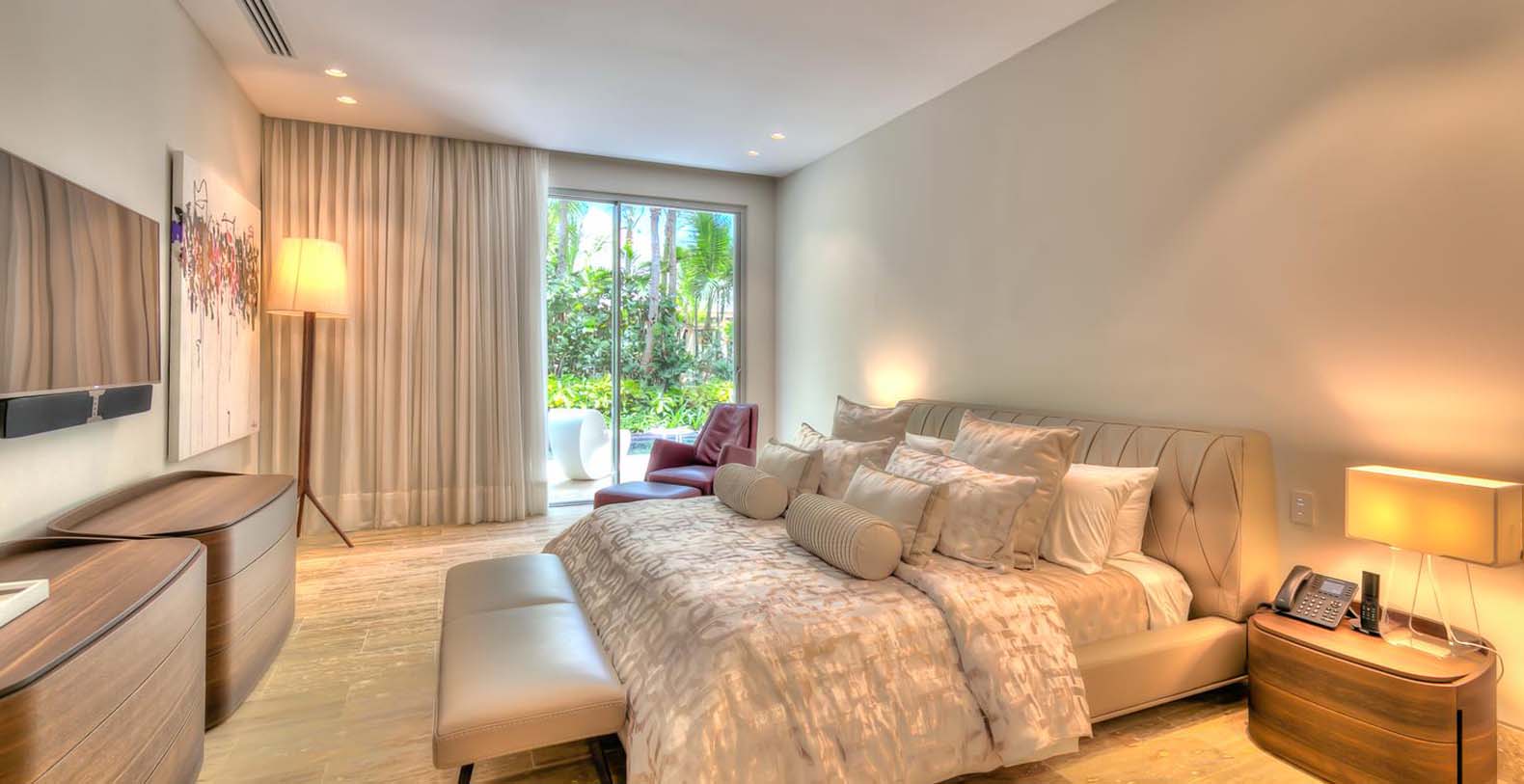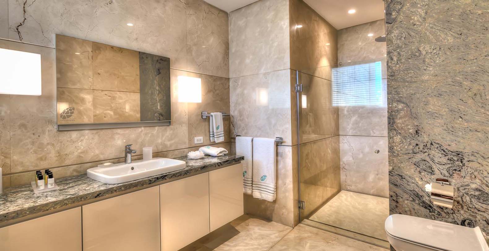 When the sun goes down, energy needs to be pumped up! On the second floor of the main villa, that can we reached with the elevator, you have the master bedroom with a king bed, ensuite bathroom with a tub and amazing views to the garden and ocean. The second and third bedrooms have a king bed and an ensuite bathroom each. On the first floor, the fourth bedroom has 2 queen beds and the fifth and the sixth bedrooms have 1 king bed each. They all also have an ensuite bathroom each. Finally, in the guest house on the second floor, we have the seventh bedroom with a king bed and the eighth bedroom with 2 queen beds. Both have an ensuite bathroom each.