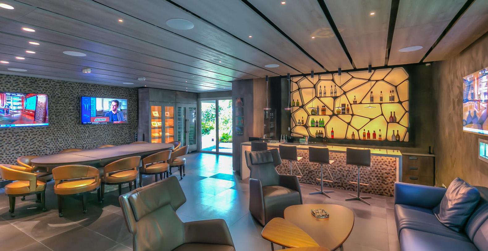 For exercising and shaping bodies the villa has a full gym with Technogym Equipment, dumbells and more. After the training session, the massage room offers all you need to relax and recover strength. For those who are not big sports fans, the property has a unique 12-seat cinema to watch your favorite movie while having popcorns or the media room on the second floor with 4K HD TV. For the ones who like to bet, on the guest house, there is a bar with 4 TV's and a poker table to try out luck and strategy.