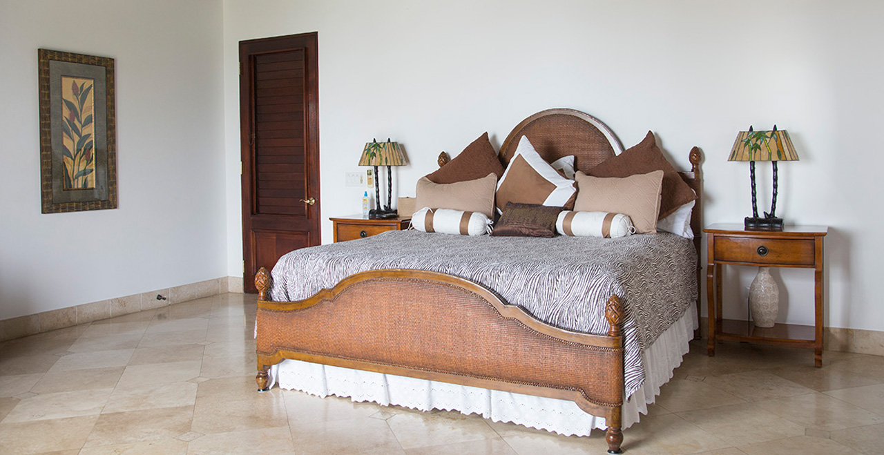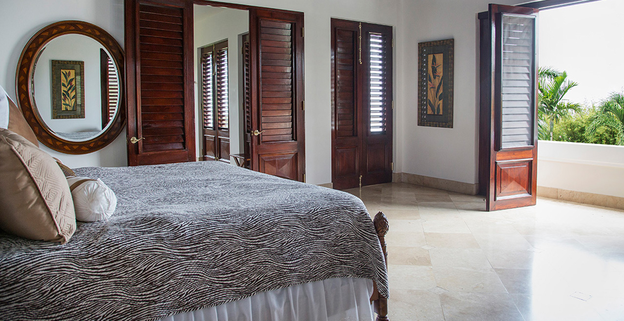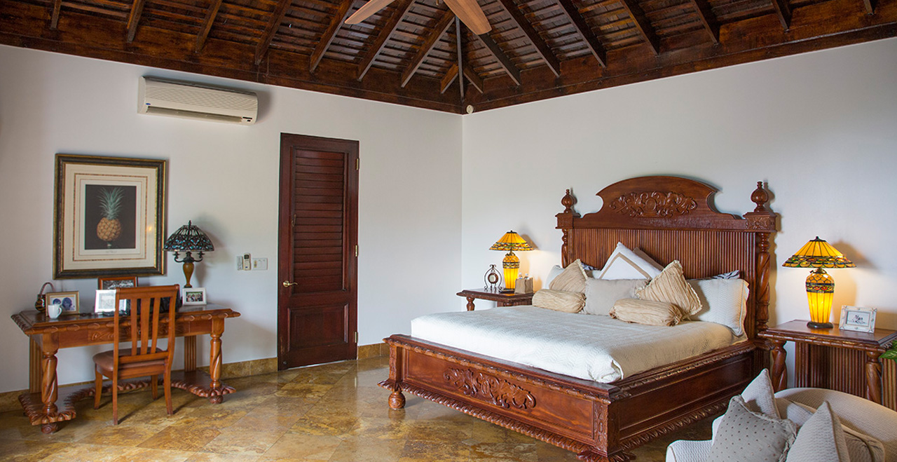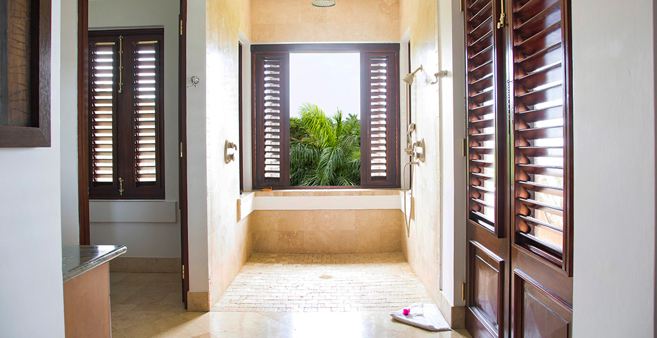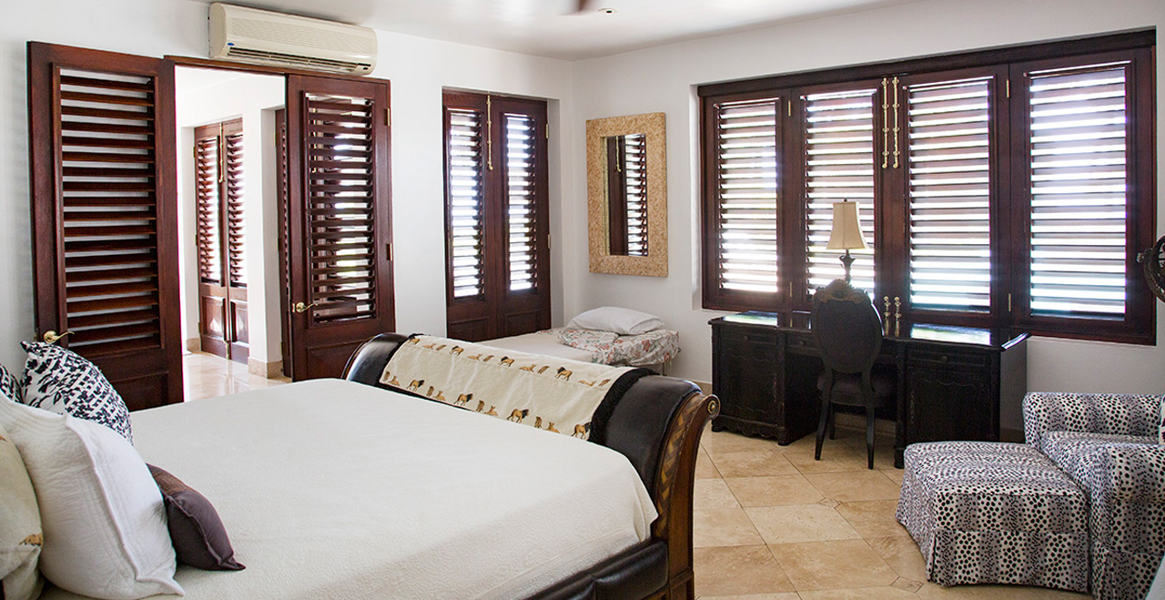 Each of the 5 bedroom suites has its own lavish bathroom made from the finest Italian tiles, complete with double sinks and huge walk in showers with 3 shower heads. Each exquisite bedroom is situated to take advantage of its own fantastic view of the Caribbean ocean and the beautifully landscaped grounds. When opened, the Plantation shutters in both the bedroom and the bathroom allow the views in. Walk in closet, individual safes, air conditioners and flat screen TVs complete the palatial suites.