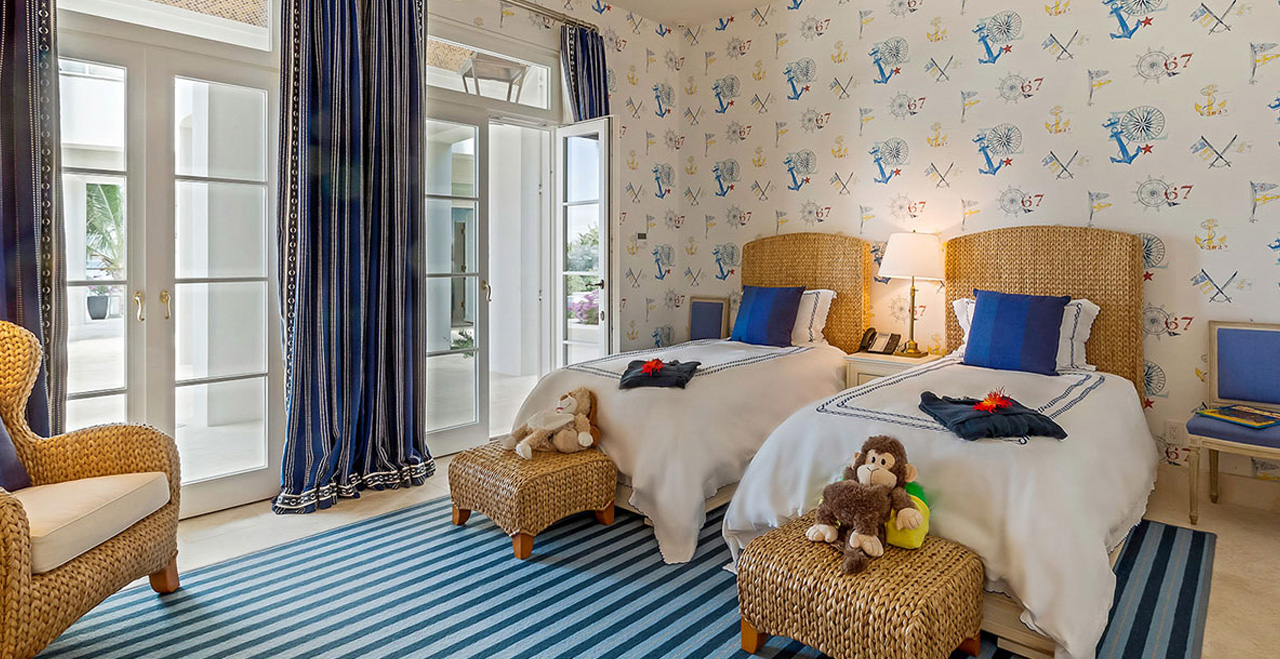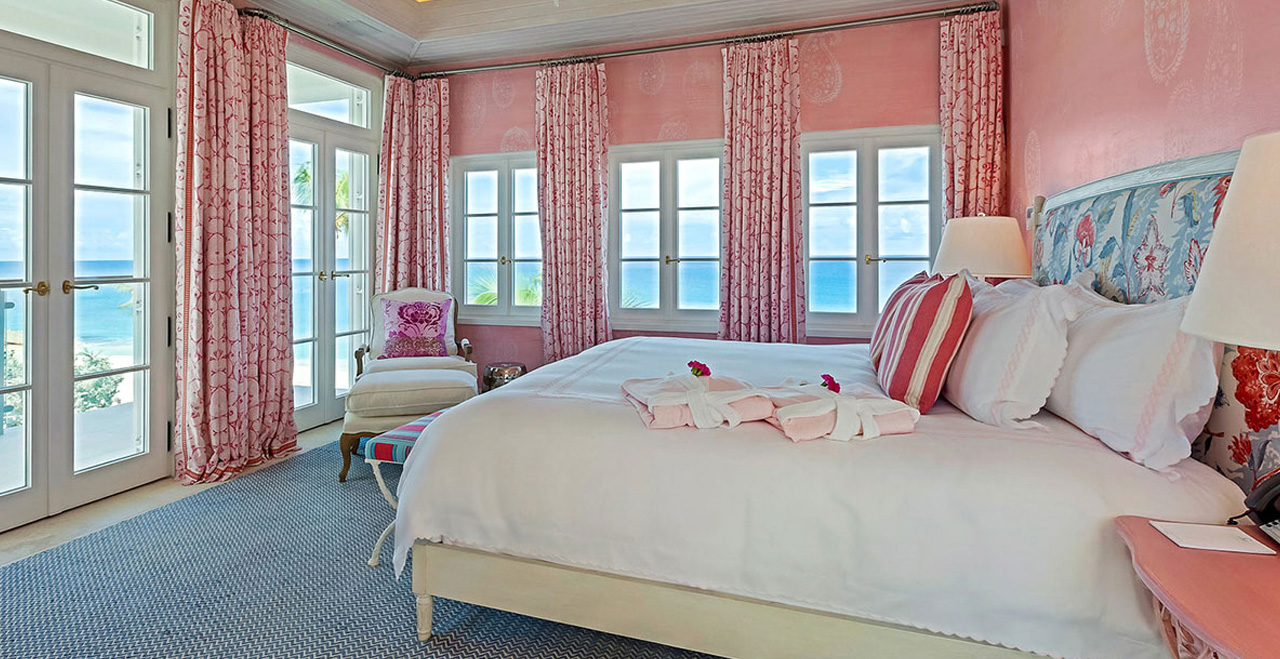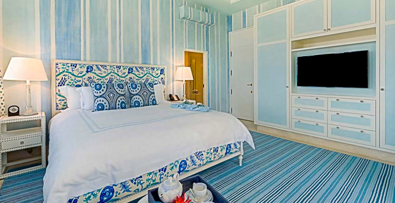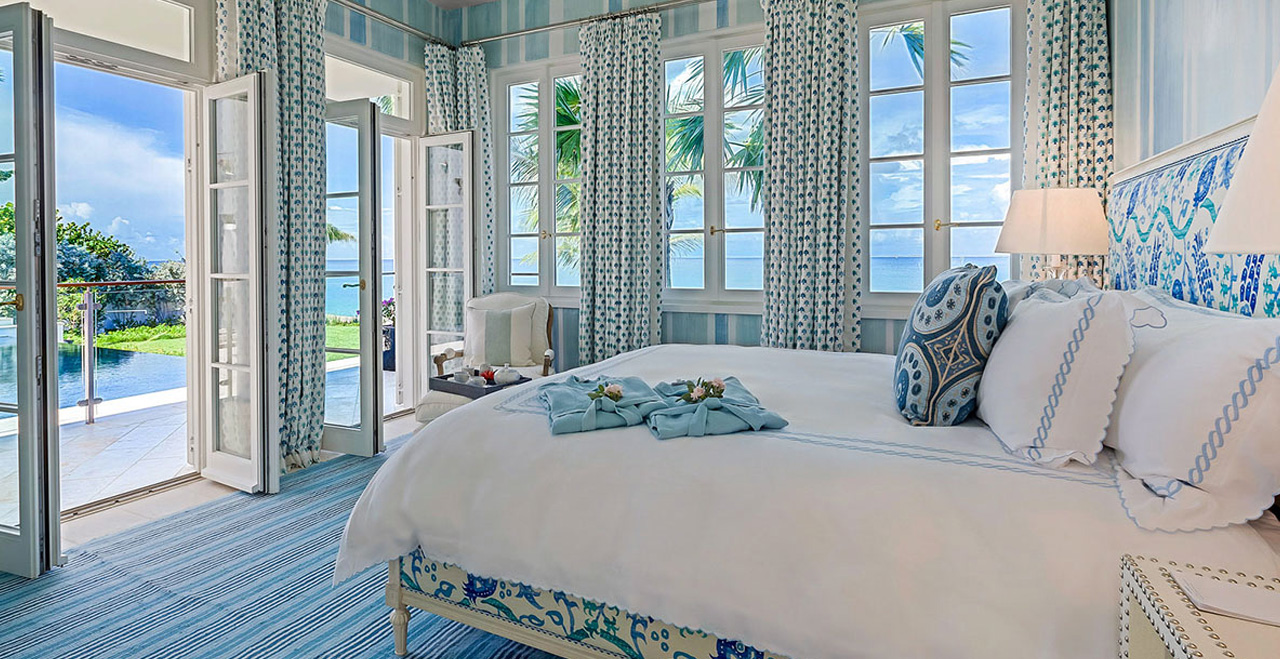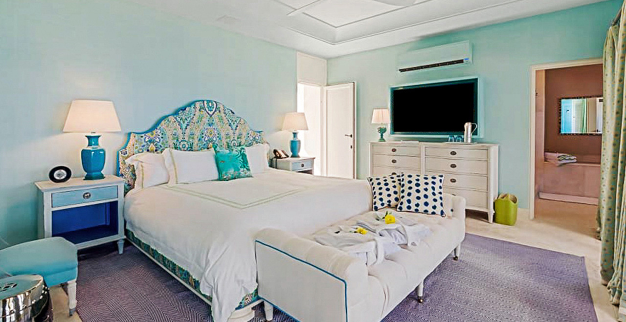All of the seven bedrooms are large (an average of 515 square feet) and overlook the sea. Each room has its own private entrance and most have a terrace with a comfortable seating arrangement. Two of the bedrooms have domed ceilings, and they are all air-conditioned with ample closet space. There is a phone in each as well as wireless internet service and cable access for mobile televisions.