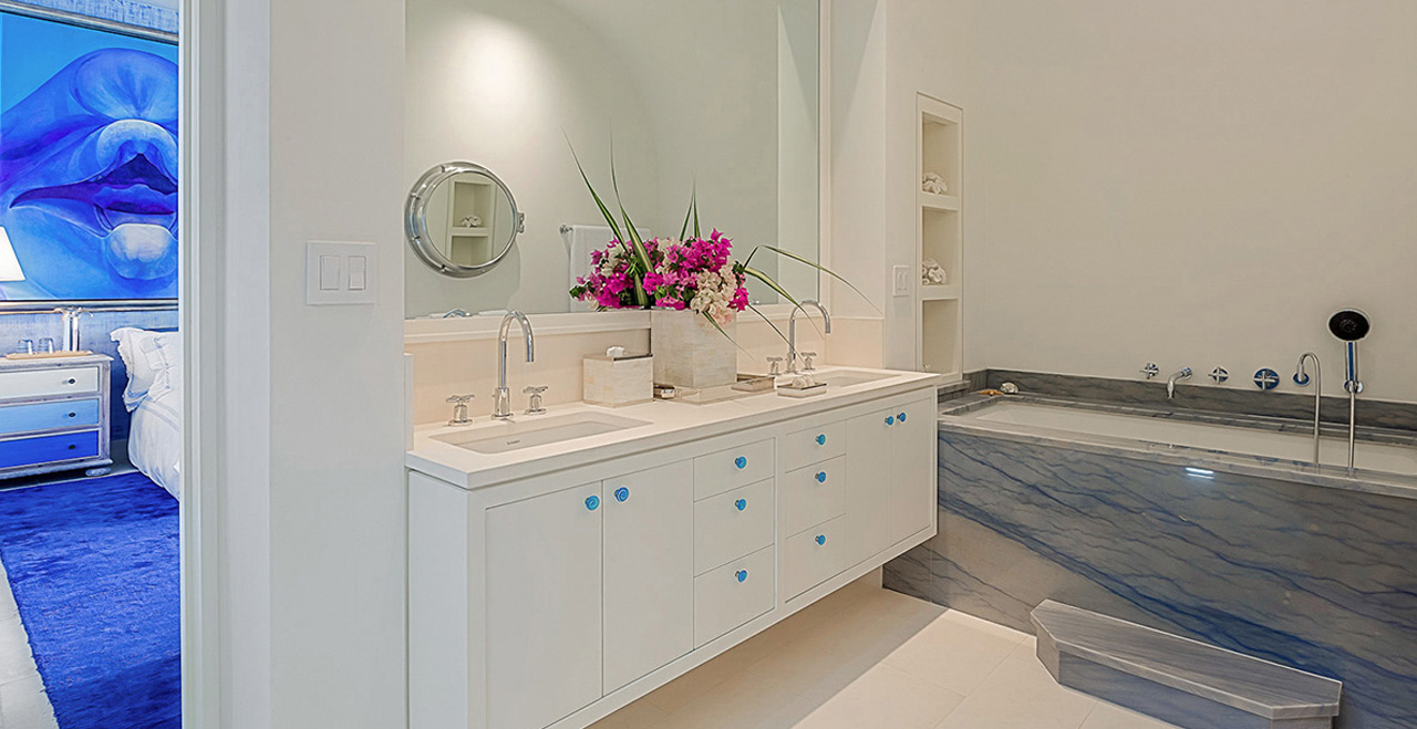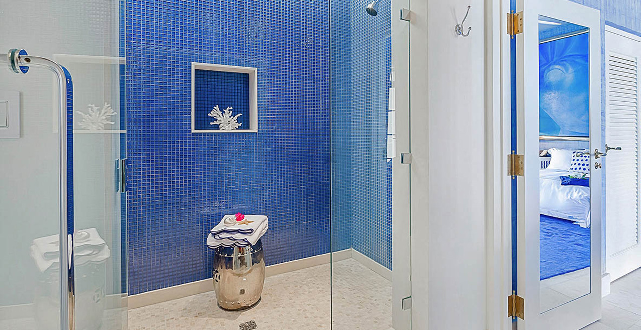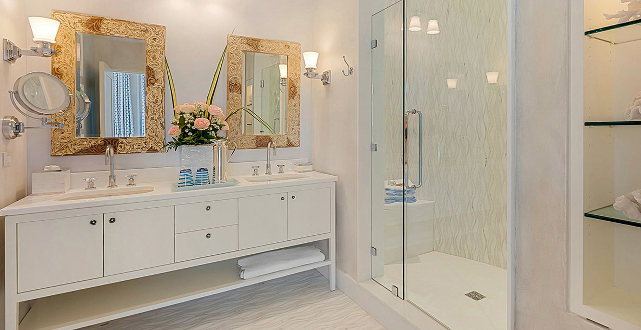 The bedrooms have en-suite European style bathrooms that are large and luxurious with imported marble, deck tubs, and glass enclosed showers. Two of the bathrooms also have private outdoor shower gardens.