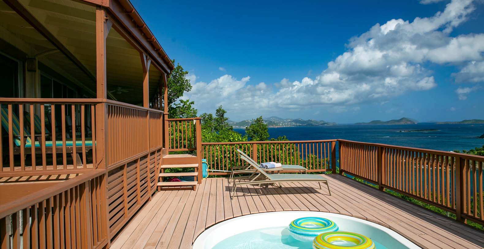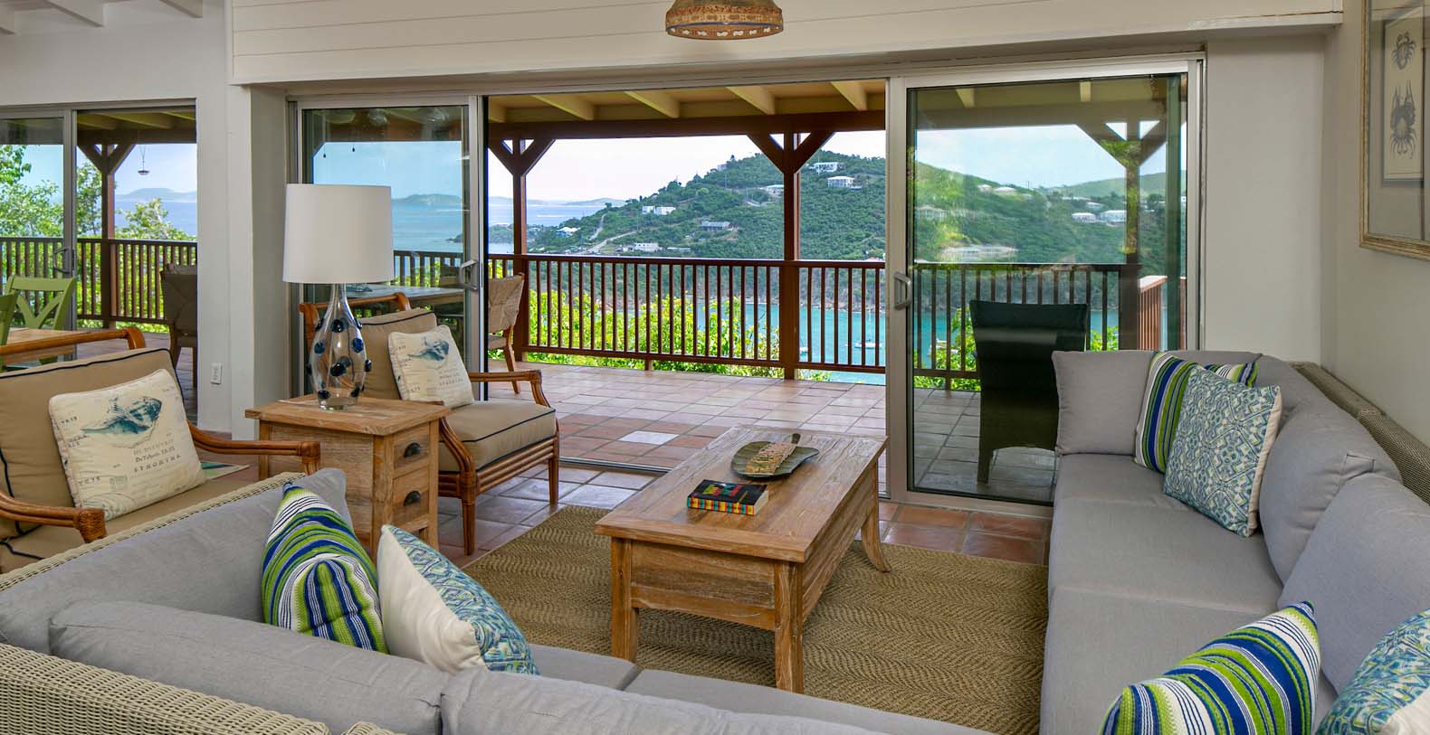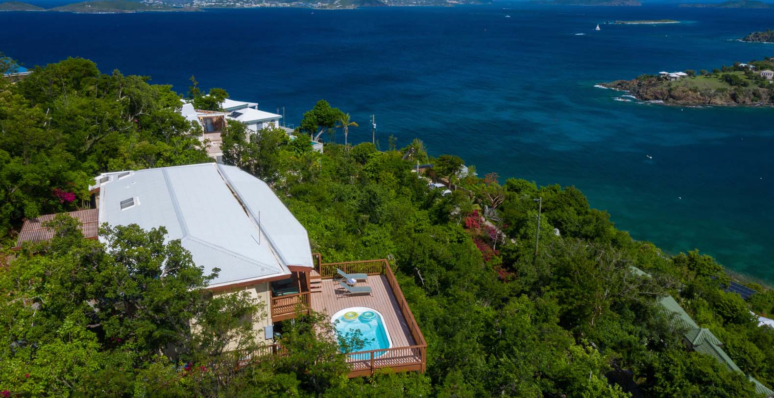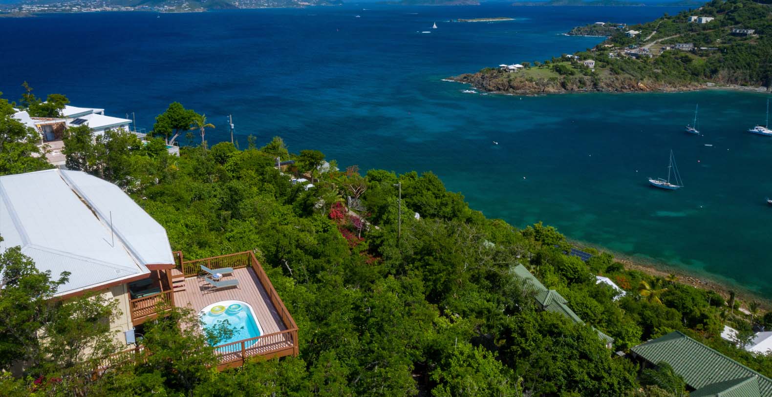 Located in Great Cruz Bay, which is desirable for its spectacular sunset views of St. Thomas, Blue Tang is a beautiful island home offering privacy and comfort. Whether you're enjoying a meal together on the covered decks, taking a break in the shaded outdoor sitting area or relaxing on the lounge chairs by the pool, the flower-scented breezes and sweeping vistas are sure to delight.