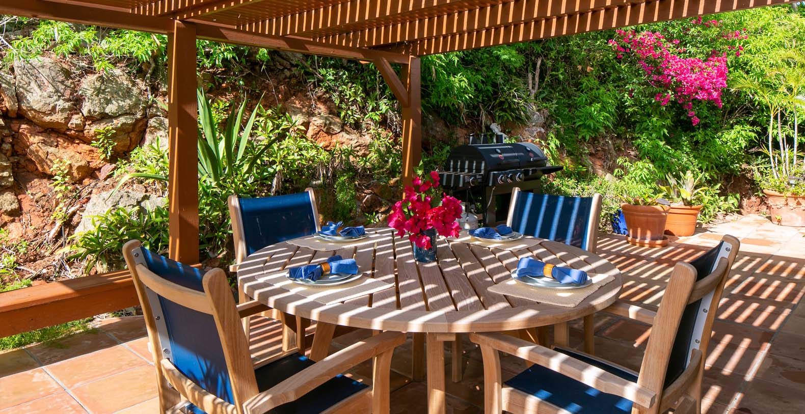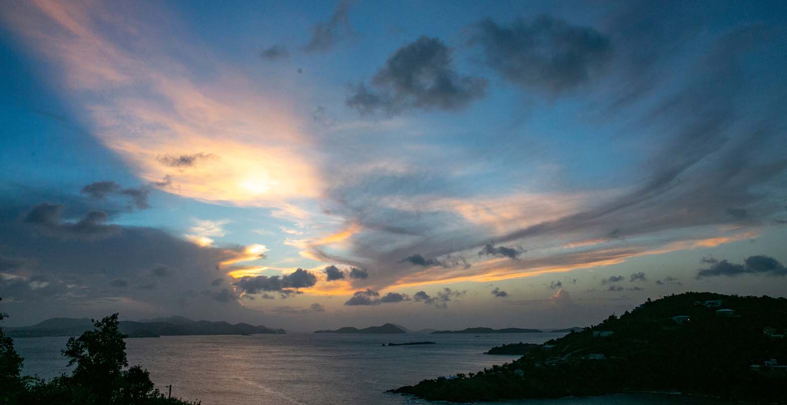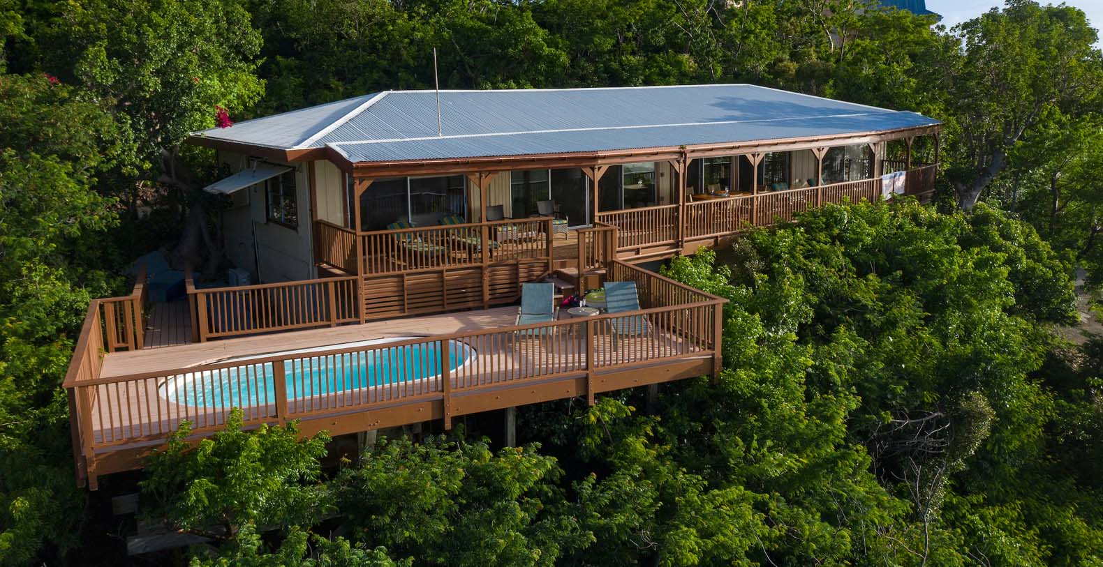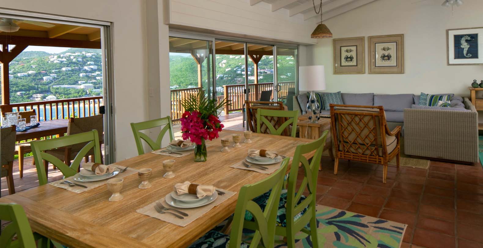 Located in Great Cruz Bay, which is desirable for its spectacular sunset views of St. Thomas, Blue Tang is a beautiful island home offering privacy and comfort. Whether you're enjoying a meal together on the covered decks, taking a break in the shaded outdoor sitting area or relaxing on the lounge chairs by the pool, the flower-scented breezes and sweeping vistas are sure to delight.
