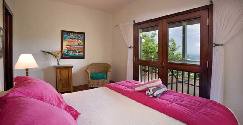 The pool features ingenious safety gates, which easily swing open or closed. Nearest the pool and garden is one pavilion offering the Green Suite, an air-conditioned queen bedroom with an ensuite bath - when you awake, a few steps will take you from your bed right to the pool for a morning swim - what a way to start another beautiful day in paradise! On the other side of the gardens and pool is Great Turtle's other poolside wing, which has a large covered deck for shady relaxation bordered by two more bedroom/bath suites with air-conditioning: the Blue Suite with a king bed (or two twin beds, if you prefer), and the queen Pink Suite. A lazy hammock hangs right outside on the verandah, and a convenient home office (equipped with a high-speed internet line with Wi-Fi for your laptop, printer, fax machine, and a handy mini-fridge and coffeemaker), is located between the Blue and Pink Suites, providing guests excellent seclusion.