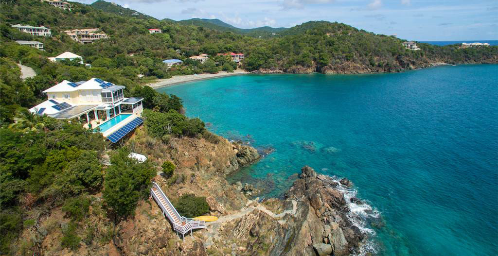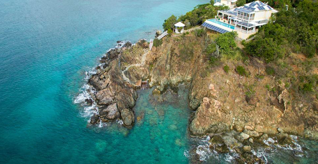 The view across St. John's south shore is breathtaking, and during your stay in Sea’s Edge you won't miss a second of it. Sea’s Edge sits on a cliff side point 60 feet above Rendezvous Bay, surrounded by water on three sides. With beautiful island-inspired architecture, charming indoor and outdoor living spaces, and complete privacy, Sea’s Edge is a haven, the perfect place to escape the stresses of civilization. This villas waterfront location makes for lots of lovely island breezes, with stairs leading to a rocky trail that brings you to a private protective cove perfect for taking a leisurely float or setting off on a rental kayak. .