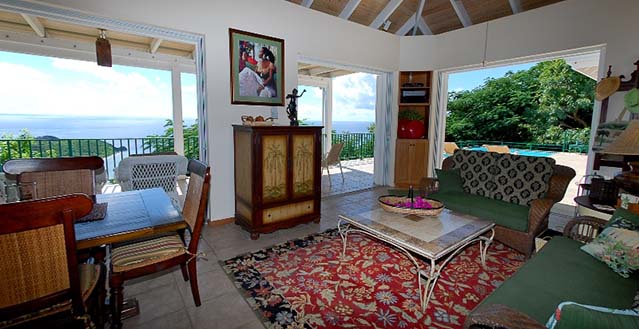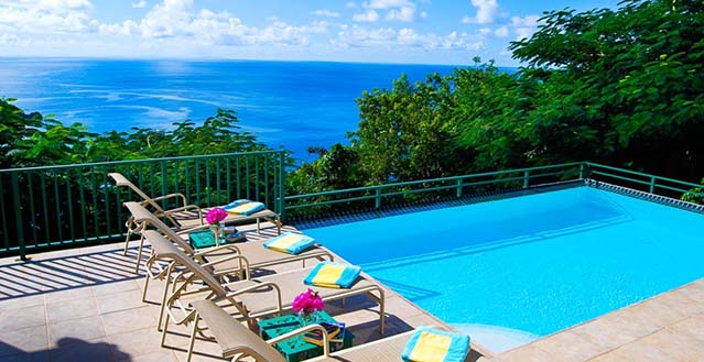 Ti Moune’s cheerful Caribbean aesthetic, lush tropical landscaping and simply magnificent views will instantly put you in an island frame of mind. You’ll want to grab your favorite book and settle in for a leisurely day on the sun-dappled decks. Or perhaps mix up a cocktail and go for a relaxing float in the pool. The well-appointed great room, gourmet kitchen, and cozy bedroom suites all make it delightfully easy to enjoy your stay.
