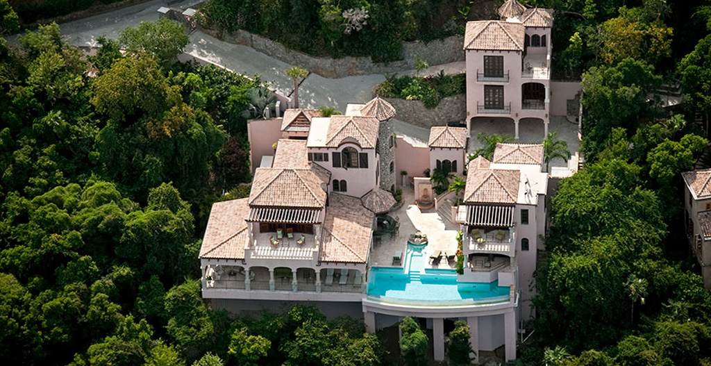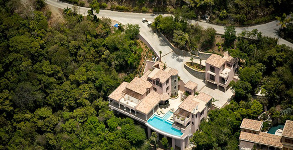 Villa Carlota artfully captures five-star grandeur and magic with its fanciful castle turret, French terracotta tile roof, and fine finishes inside and out - be sure to admire the unique mahogany doors and windows, which are clad in bronze outside to match the bronze railings, and the harmonious use of Italian marble, native shell- and stonework and exotic woods throughout. Overindulge yourself at this beautifully-rendered masterpiece, sitting above it all on its green hillside, surveying the expanse of cerulean sea and sky. Villa Carlota approaches holiday perfection: five stars.