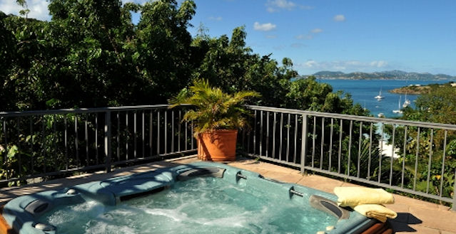 Villa Adagio, completely rebuilt, is a unique three bedroom, three bath villa on the South Shore of St. John, offering the ultimate in luxury and privacy. Its hillside location affords spectacular views of Great Cruz Bay, Pillsbury Sound, and a distant view of St. Thomas.