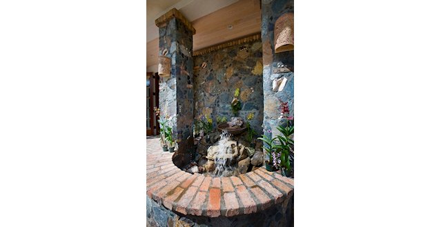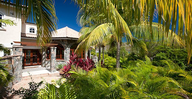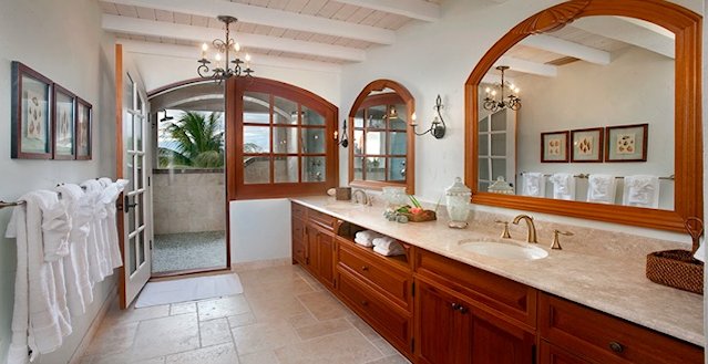 Situated on over one acre of waterfront land behind an electronic gate landscaped with tropical flowers and graceful royal, foxtail and coconut palm trees, spectacular A La Mer's large-scale design and execution is an artful combination of both colonial West Indies and classic St. John, incorporating French antique terra cotta roof tiles, St. John shell- and stonework, aged brick, all melded to create stunning exteriors, and inside, a pleasing floorplan which flows easily and provides lots of space for everyone's comfort. Every handsome custom detail - mahogany cabinetry hand carved in Honduras, lovely tile design throughout, cypress ceilings, designer island decor, artisan lighting, botanical art prints, and a bounty of excellent features and amenities for guests' enjoyment - make luxurious yet beach-casual A La Mer a unique and matchless Caribbean villa experience for families and friends - five brilliant stars, and more!