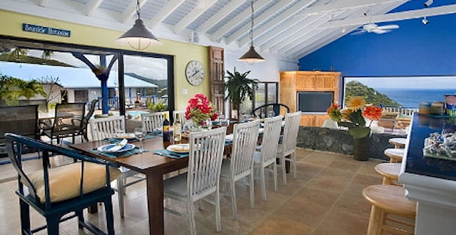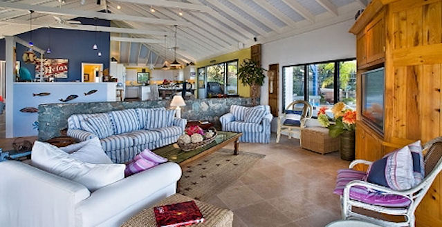 Avalon is a beautifully redecorated 5 bedroom 5 bath villa high on Maria Bluff with a wonderful view into Chocolate Hole. This lavishly decorated villa has many different places to sit and enjoy the wonderful view. This villa is particularly kid friendly with toys, kid sized furniture and other amenities. Looking down into the sea from the large pool deck you can often see turtles or rays in the crystal clear waters of the Caribbean Sea.