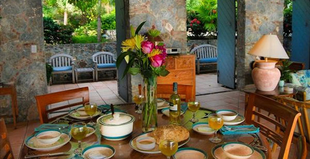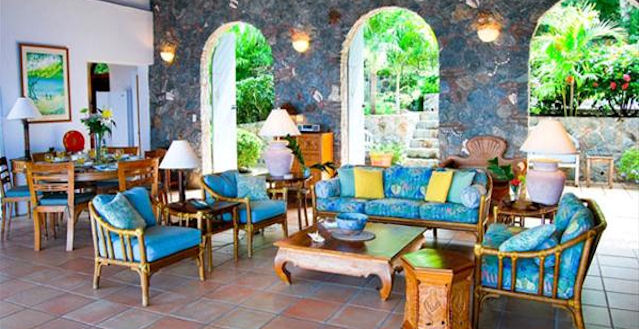 Coqui, a lovely cliff side villa, is perched 50 feet above the brilliant blue waters of Pillsbury Sound overlooking St. Thomas. It commands an incomparable 180 degree panoramic view that will take your breath away.