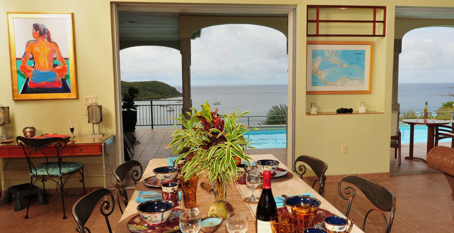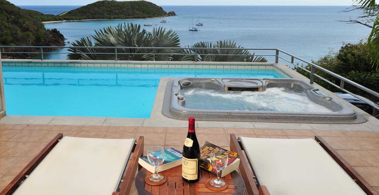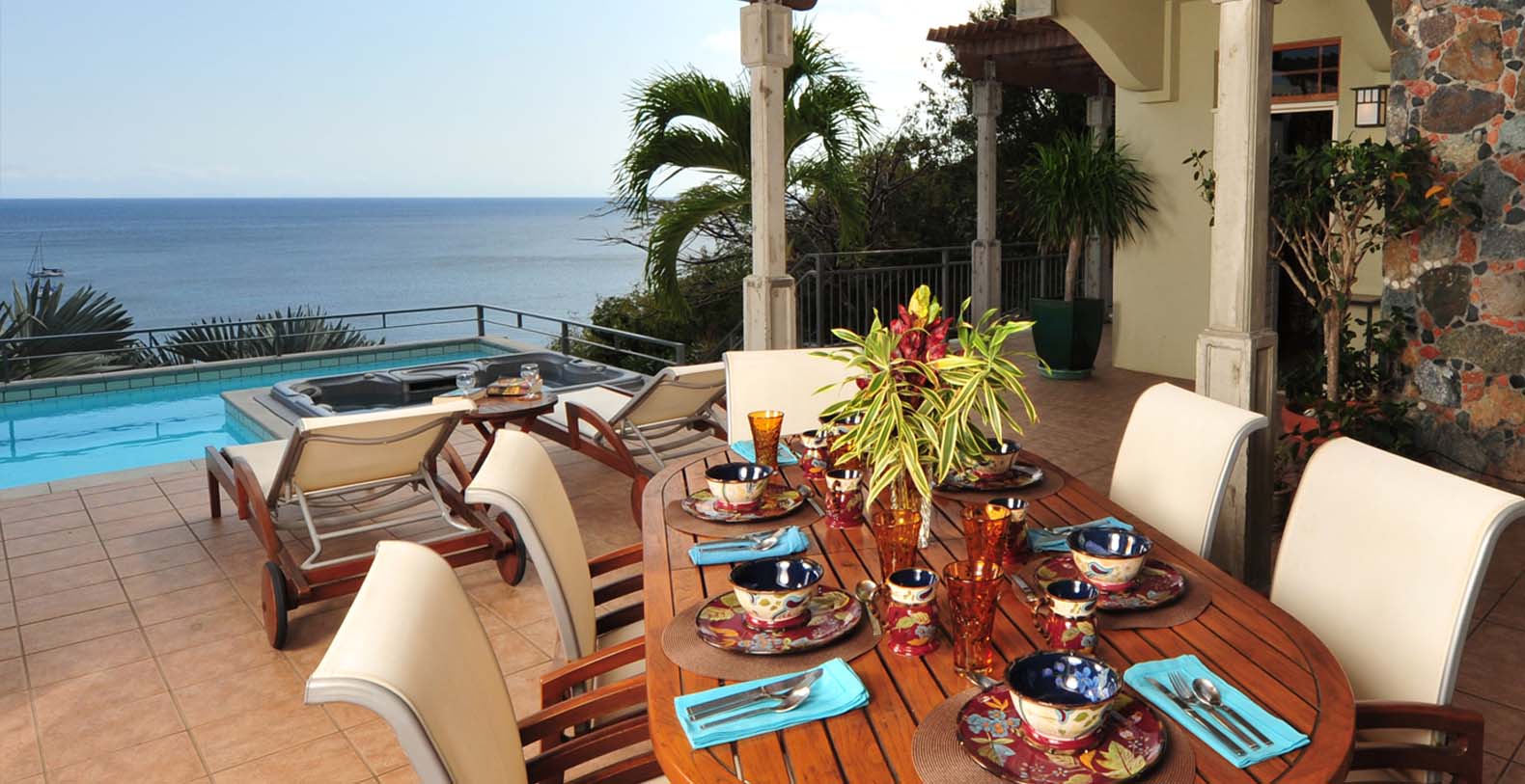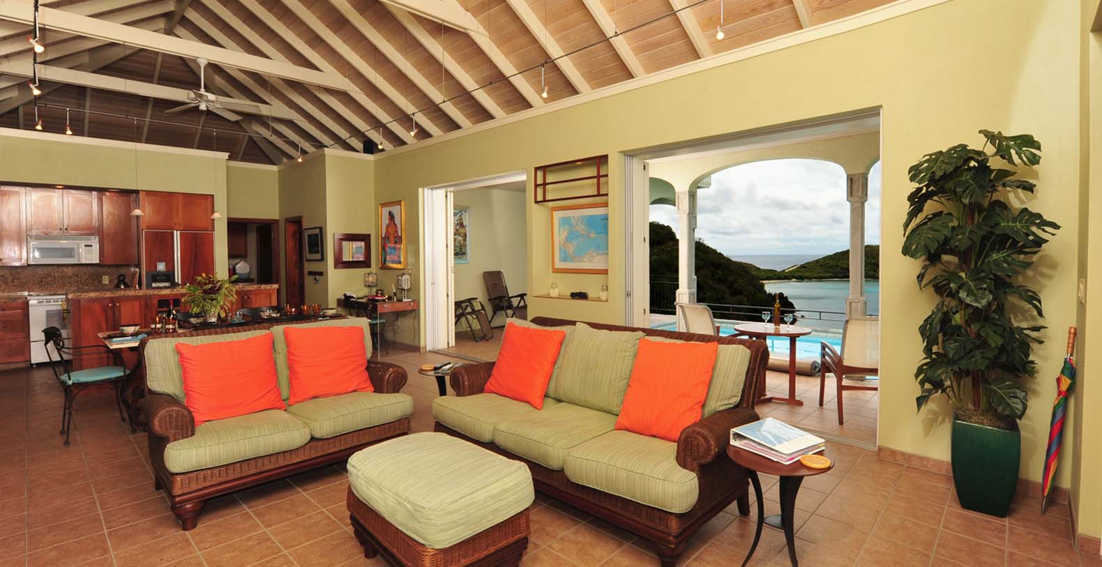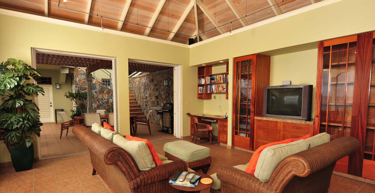Although Cruz Bay and the pristine beaches of St. John’s North Shore are within easy driving distance, you may be tempted to spend your entire vacation at home. Latitude’s ample decks offer countless options for lounging in the sun and boast, along with the large pool and hot tub, an exceptional view of the sea. Elegant living spaces, an expansive kitchen, and three luxurious bedroom suites round out Latitude’s list of amenities, making it an excellent choice, if you’re looking for a fully loaded island retreat.