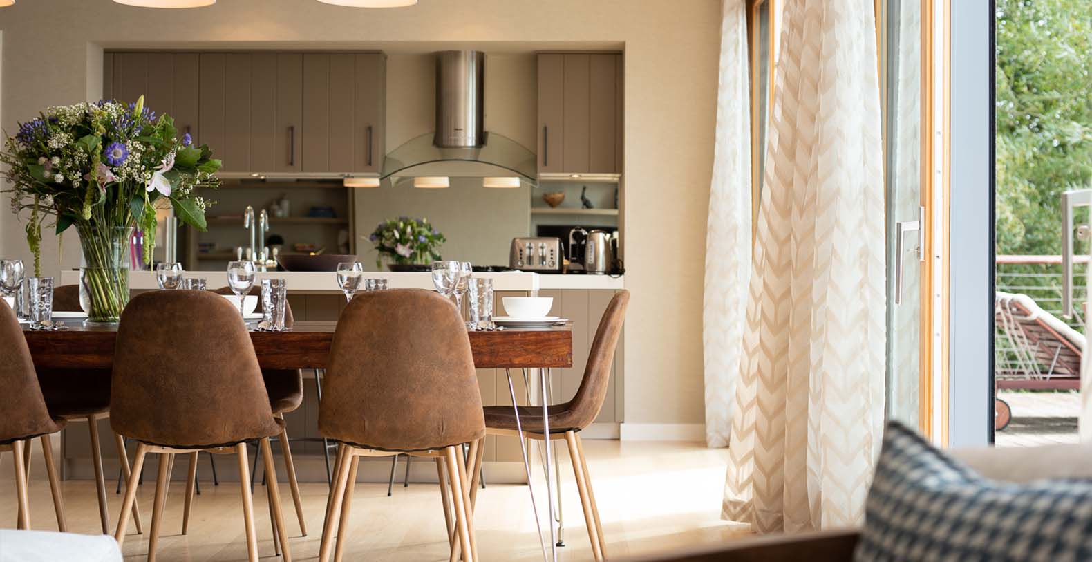 Furnished specifically for luxurious holiday rentals it boasts a large open plan living area and outside terrace with expansive south facing Lake views. You also get amazing views from the ground floor living areas and all the bedrooms.